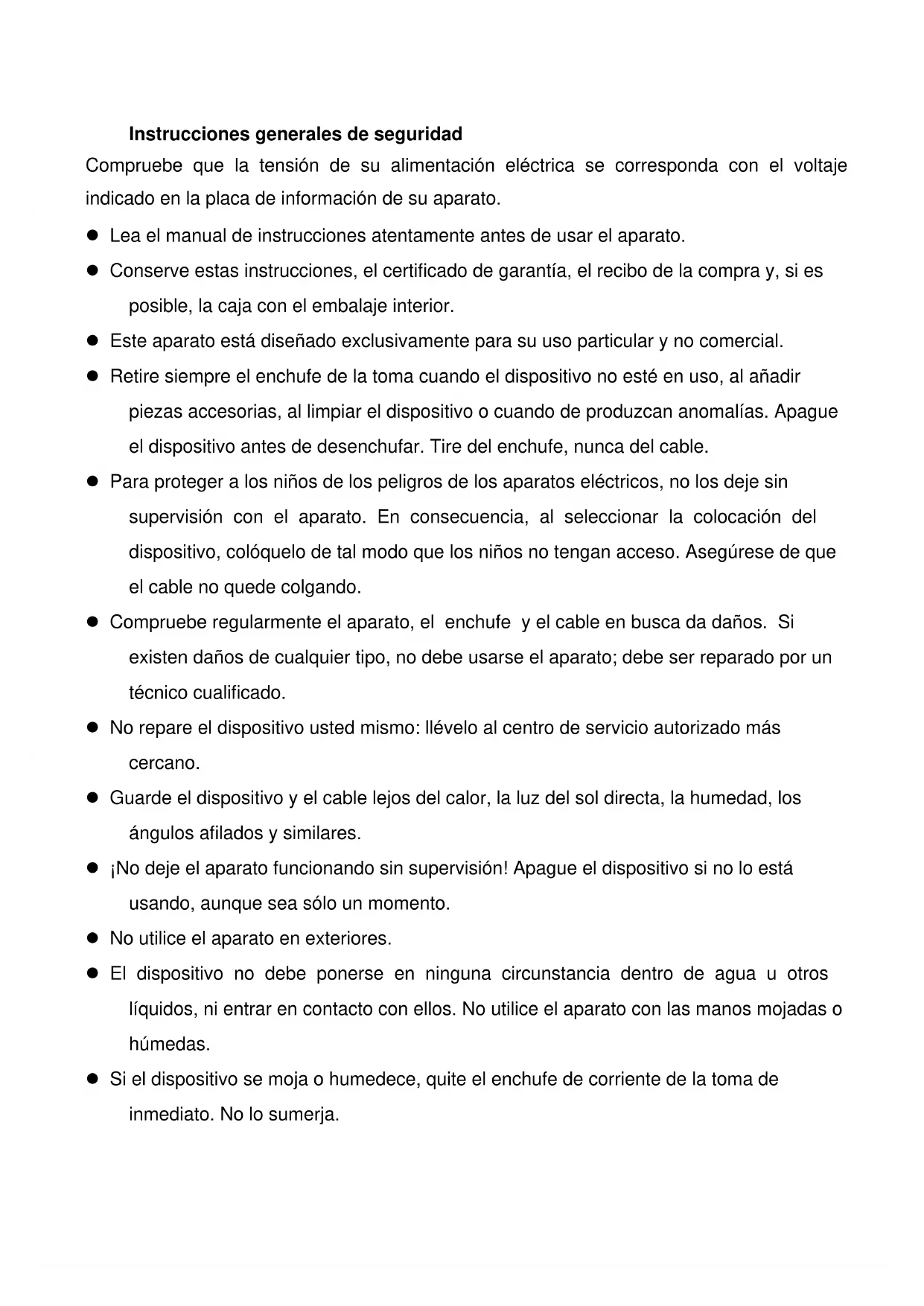 inmediato. No lo sumerja. Utilice el dispositivo exclusivamente para su finalidad.