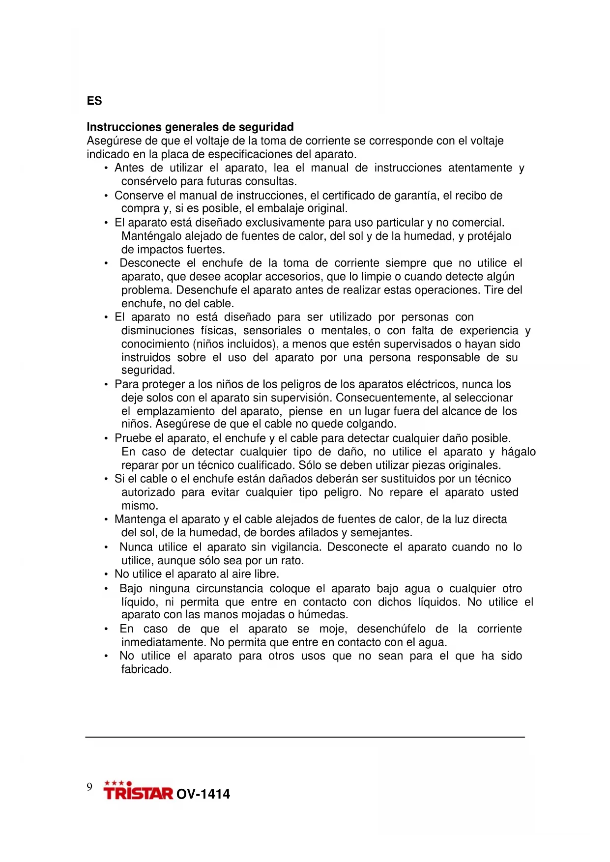 Encuentra gratis el manual del aparato OV1414 TRISTAR en formato PDF.