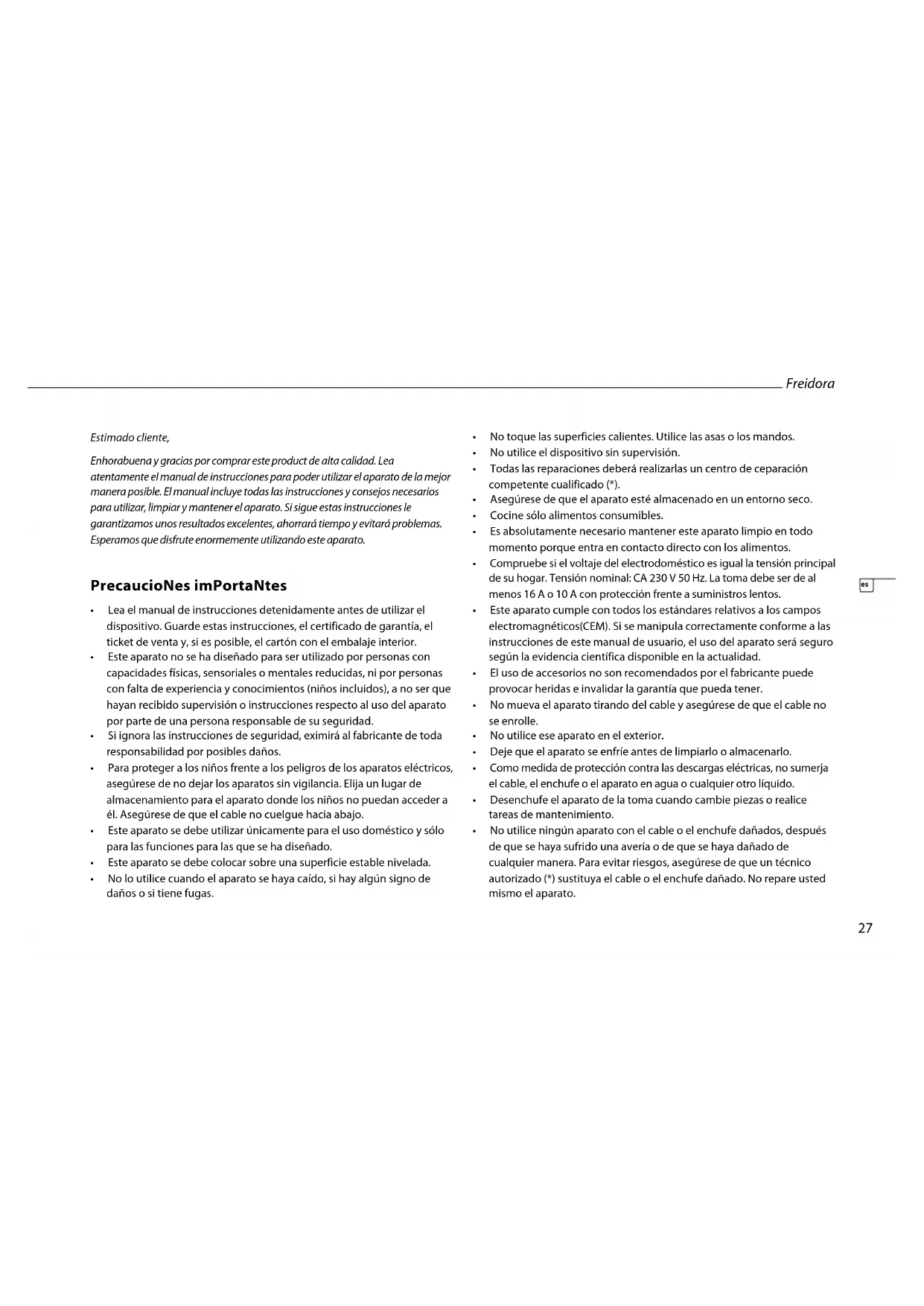 • Utilicelafreidorasóloparaelusodoméstico.