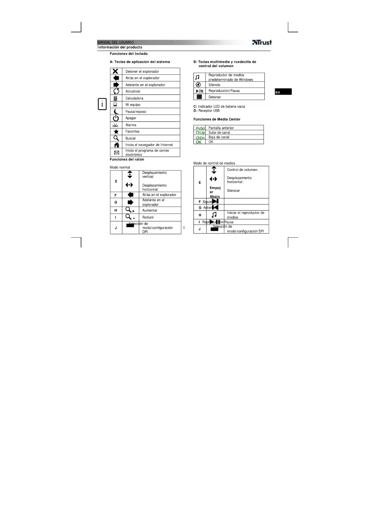 Descarga las instrucciones para tu Teclado en formato PDF gratis! Encuentra tus instrucciones Wireless Laser MediaPlayer Deskset - TRUST y toma tu dispositivo electrónico nuevamente en la mano. En esta página están publicados todos los documentos necesarios para el uso de su dispositivo. Wireless Laser MediaPlayer Deskset de la marca TRUST.
