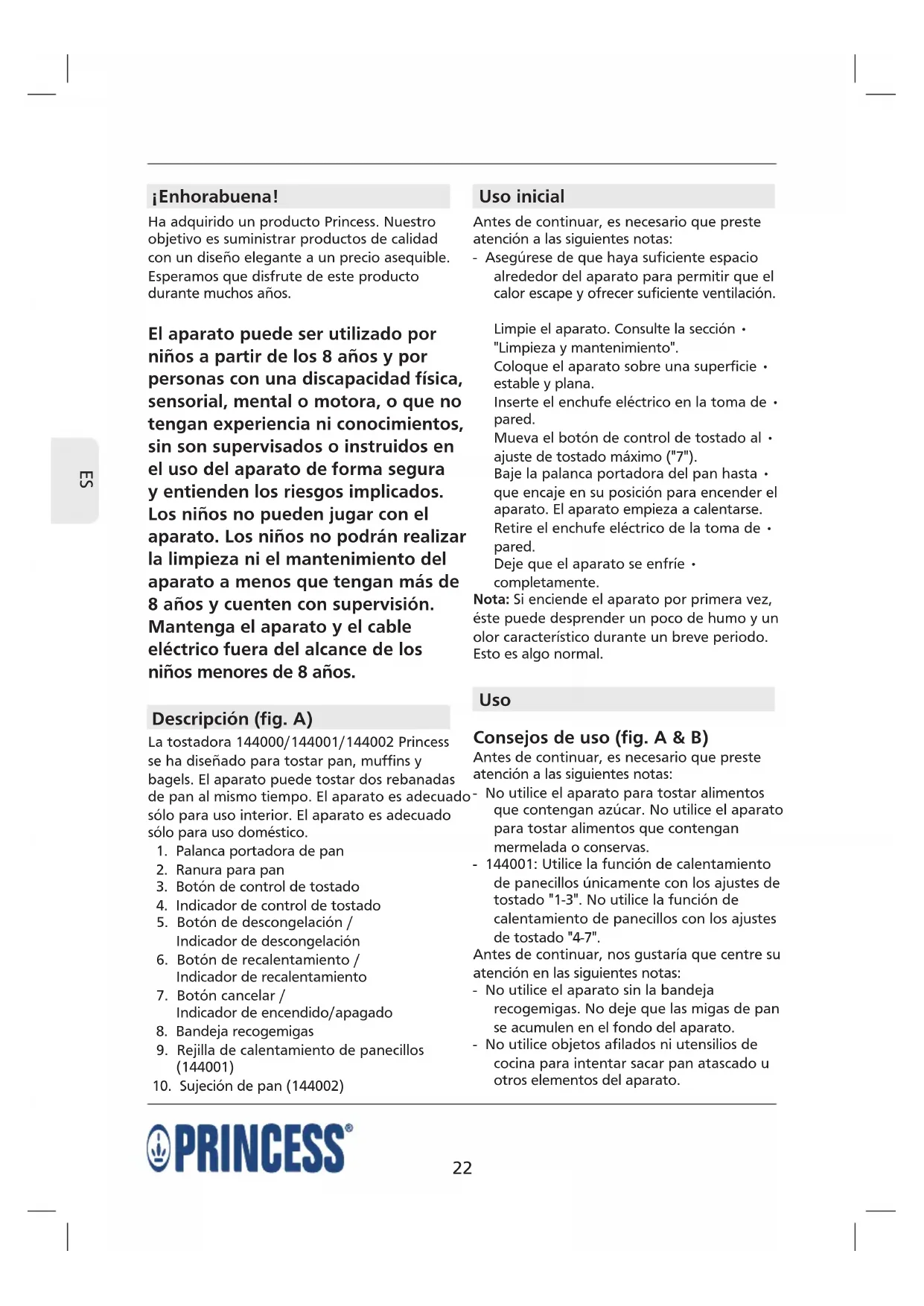 Encuentra gratis el manual del aparato Compact4All Toaster 144002 PRINCESS en formato PDF.