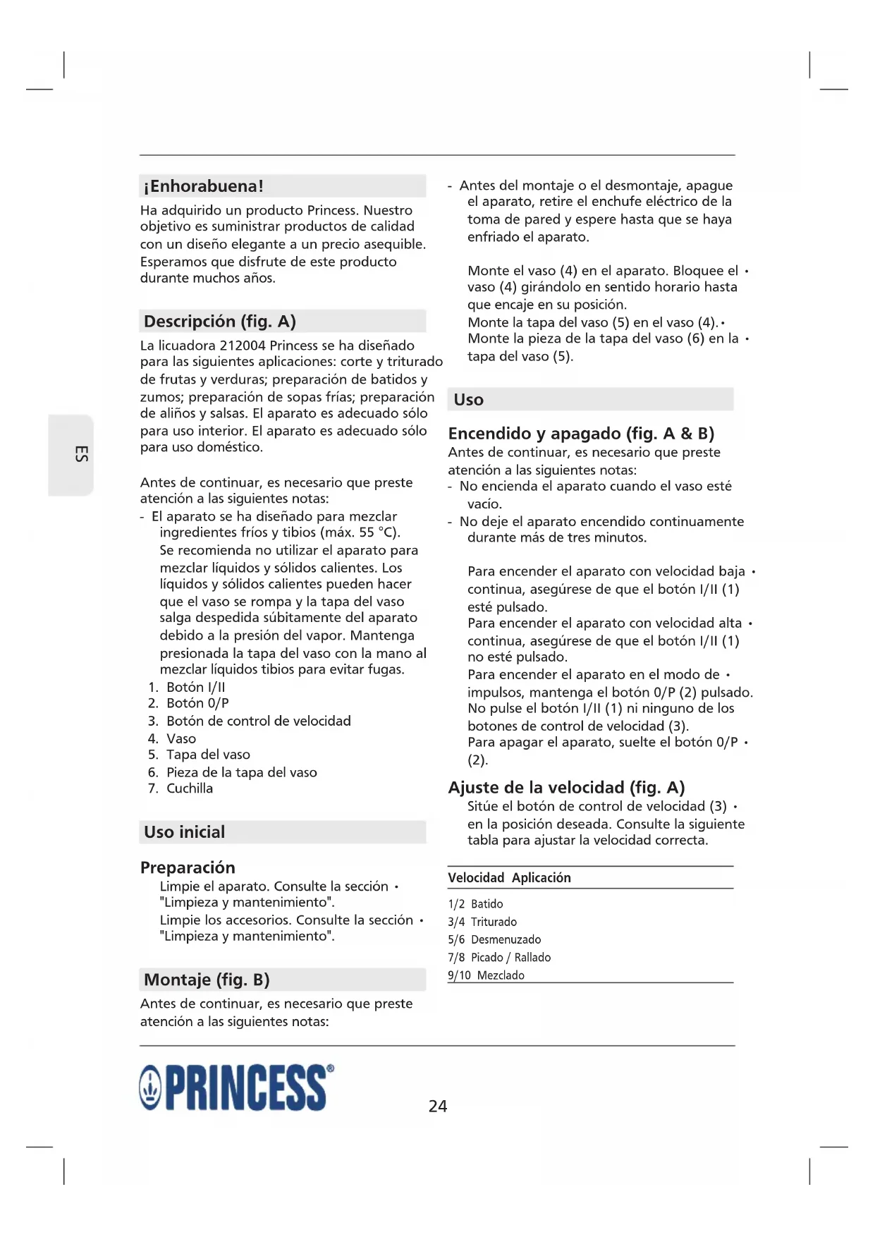 MANUAL DE USUARIO Royal Blender Turbo 10speed PRINCESS