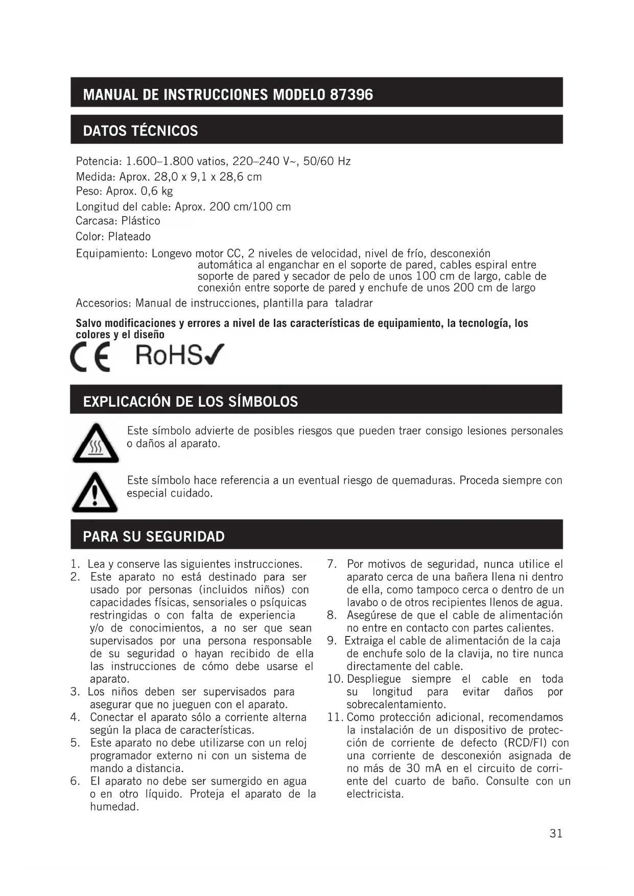 MANUAL DE INSTRUCCIONES MODELO 87396