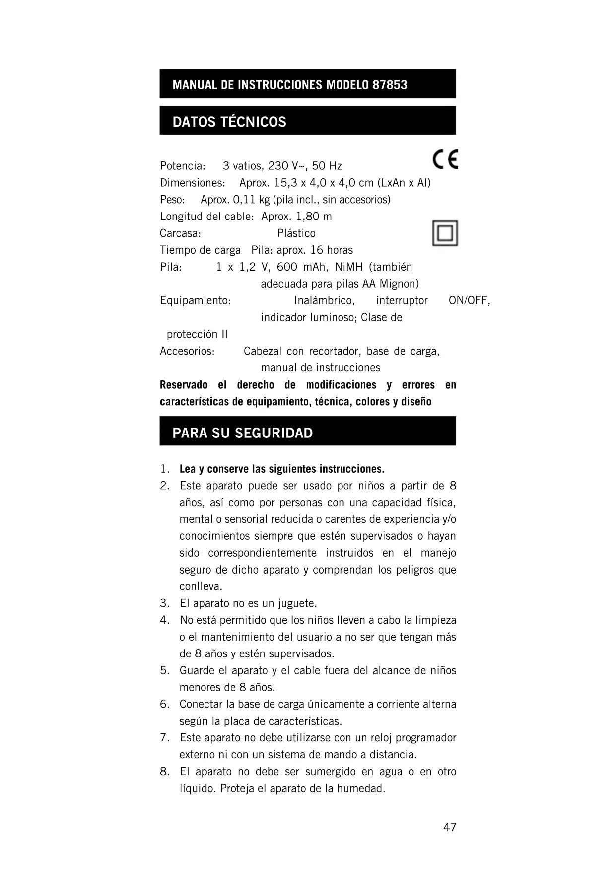 87853 - Recortador de barba UNOLD - Manual de uso y guía de instrucciones gratis