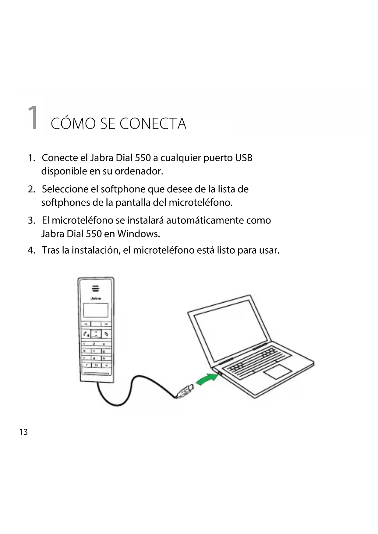 1. Conecte el Jabra Dial 550 a cualquier puerto USB