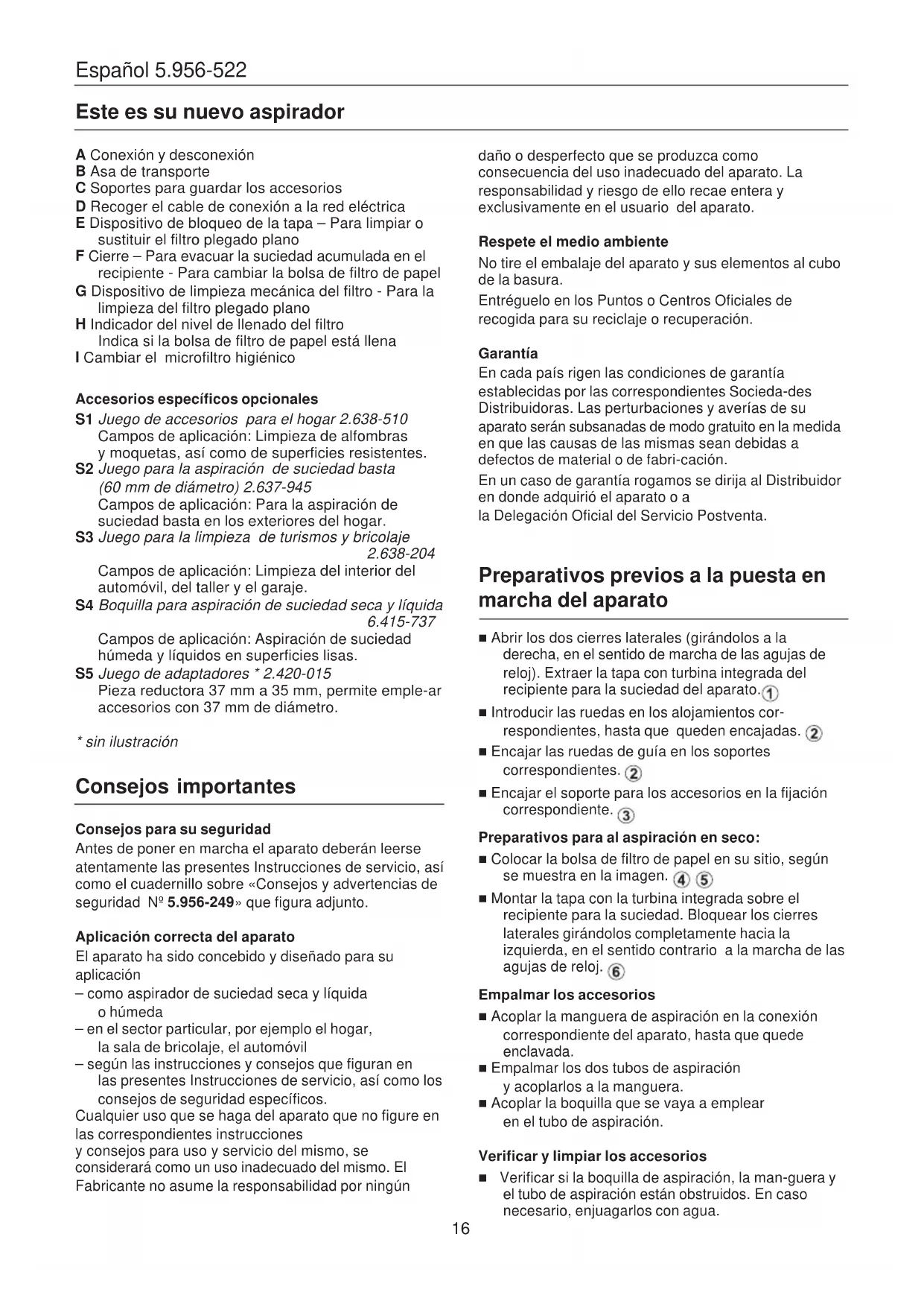 Antes de poner en marcha el aparato deberán leerse atentamente las presentes Instrucciones de servicio, así como el cuadernillo sobre «Consejos y advertencias de seguridad N° 5.956-249» que figura adjunto.