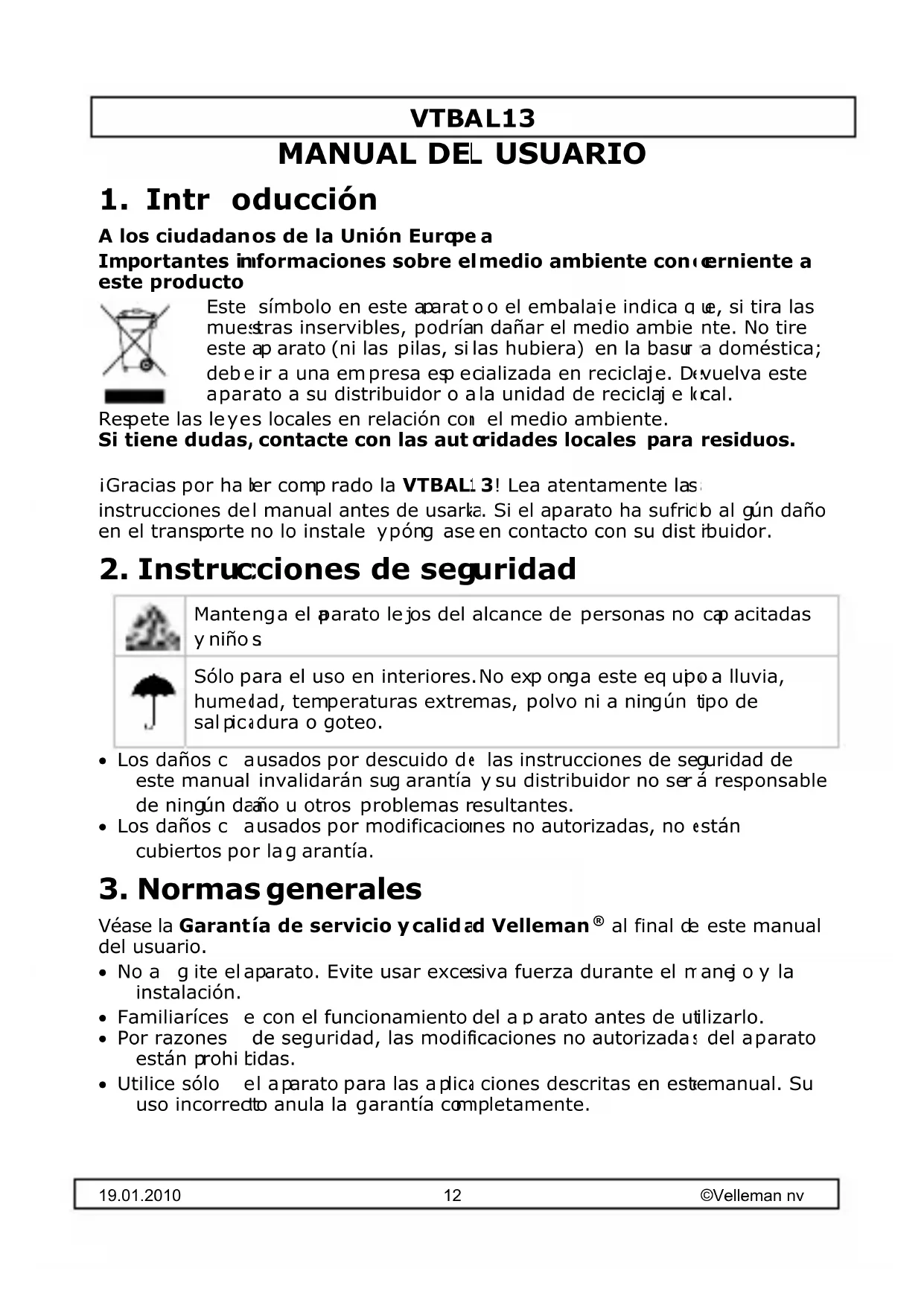 Encuentra gratis el manual del aparato VTBAL13 VELLEMAN en formato PDF.