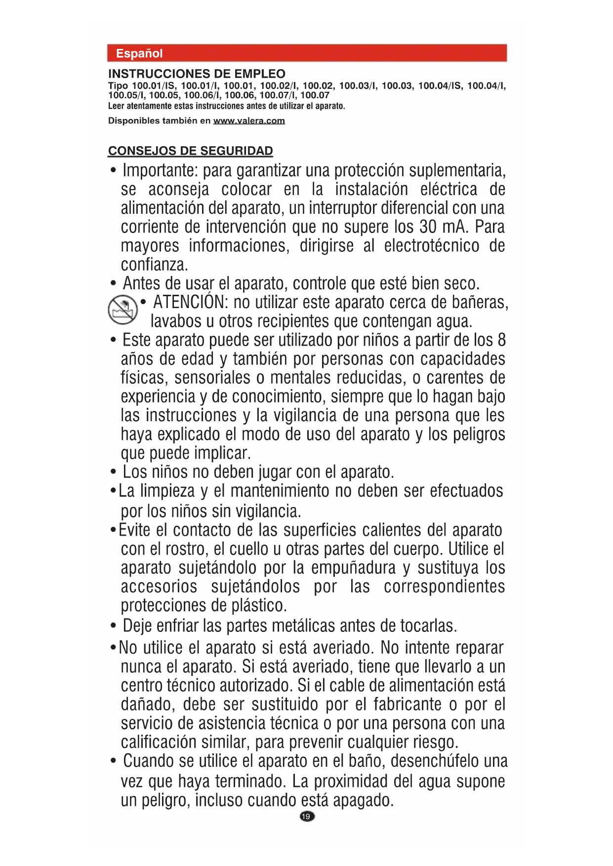 • ATENCIÓN: no utilizar este aparato cerca de bañeras,