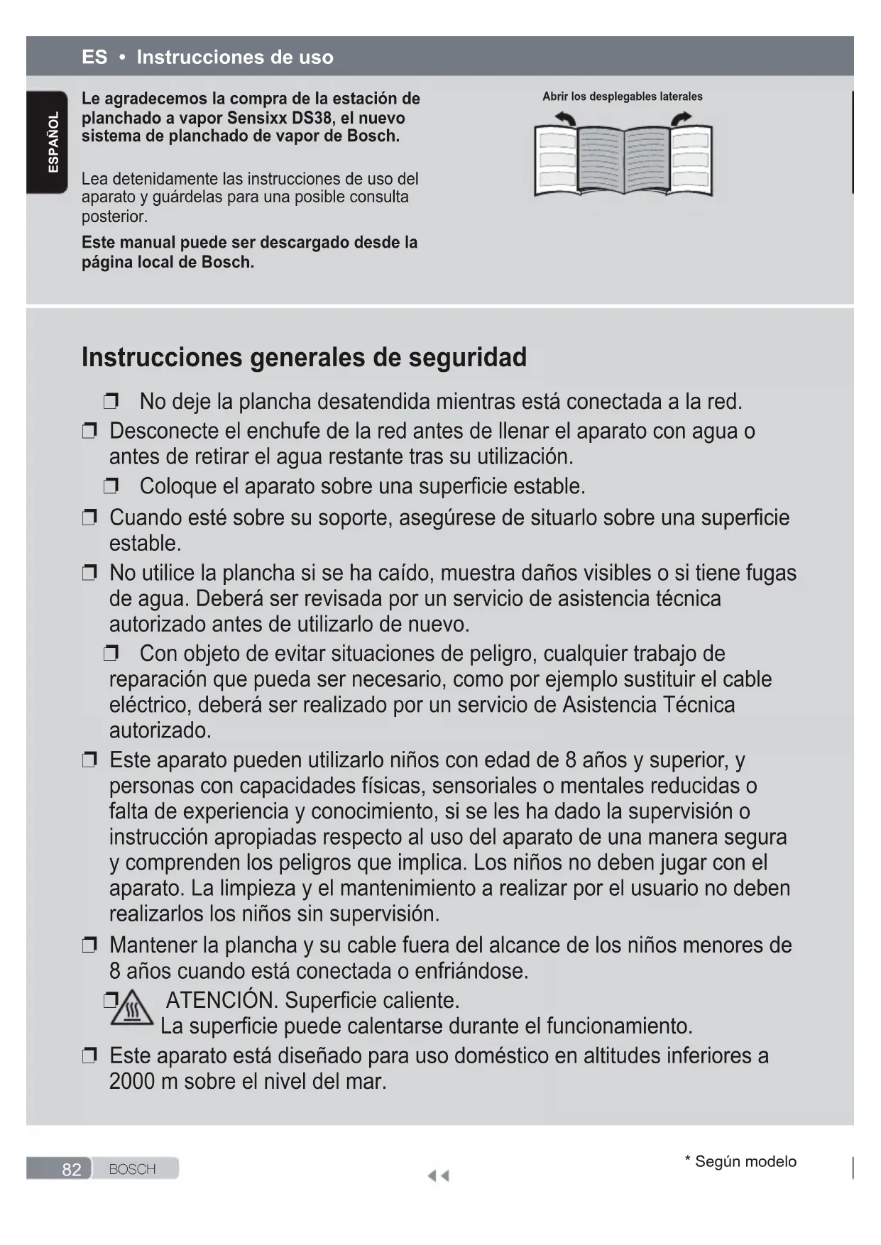 82 B O S C H * Según modelo ESpañol Instrucciones generales de seguridad