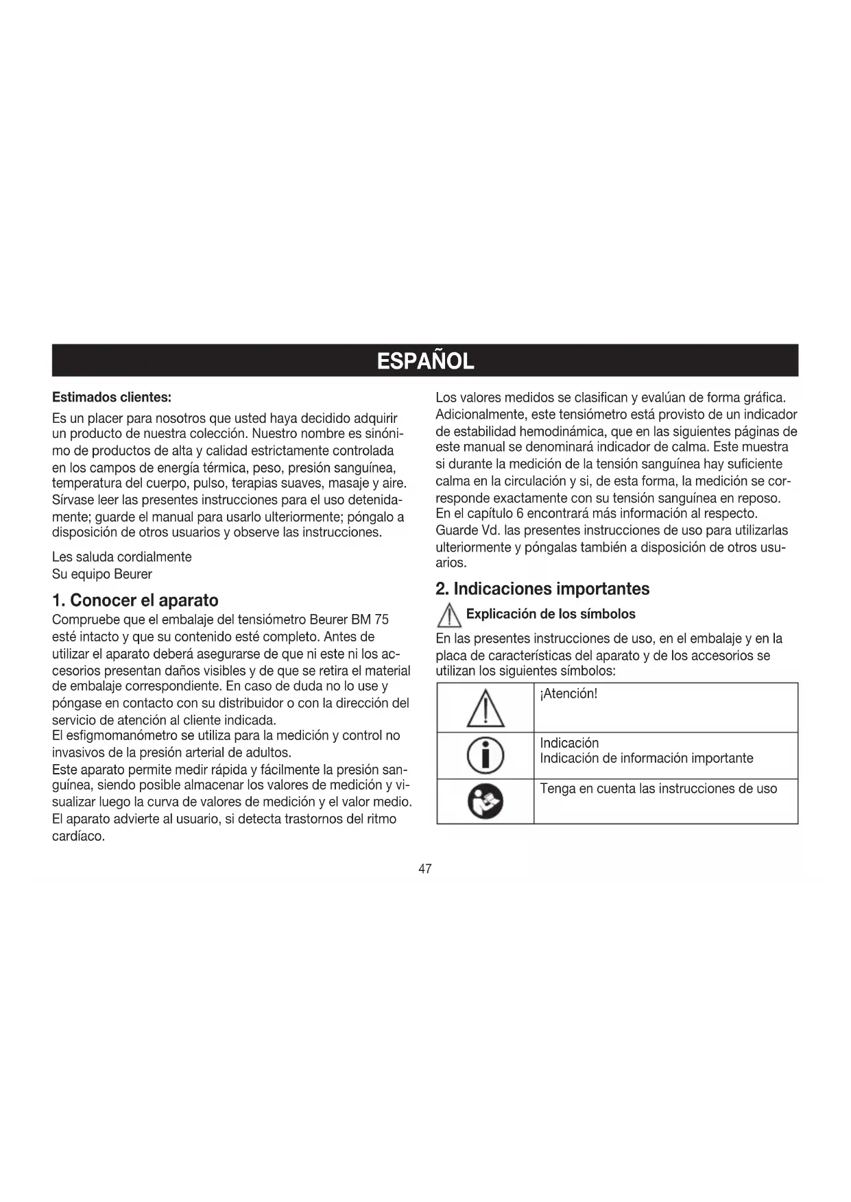 MANUAL DE USUARIO BM 75 BEURER