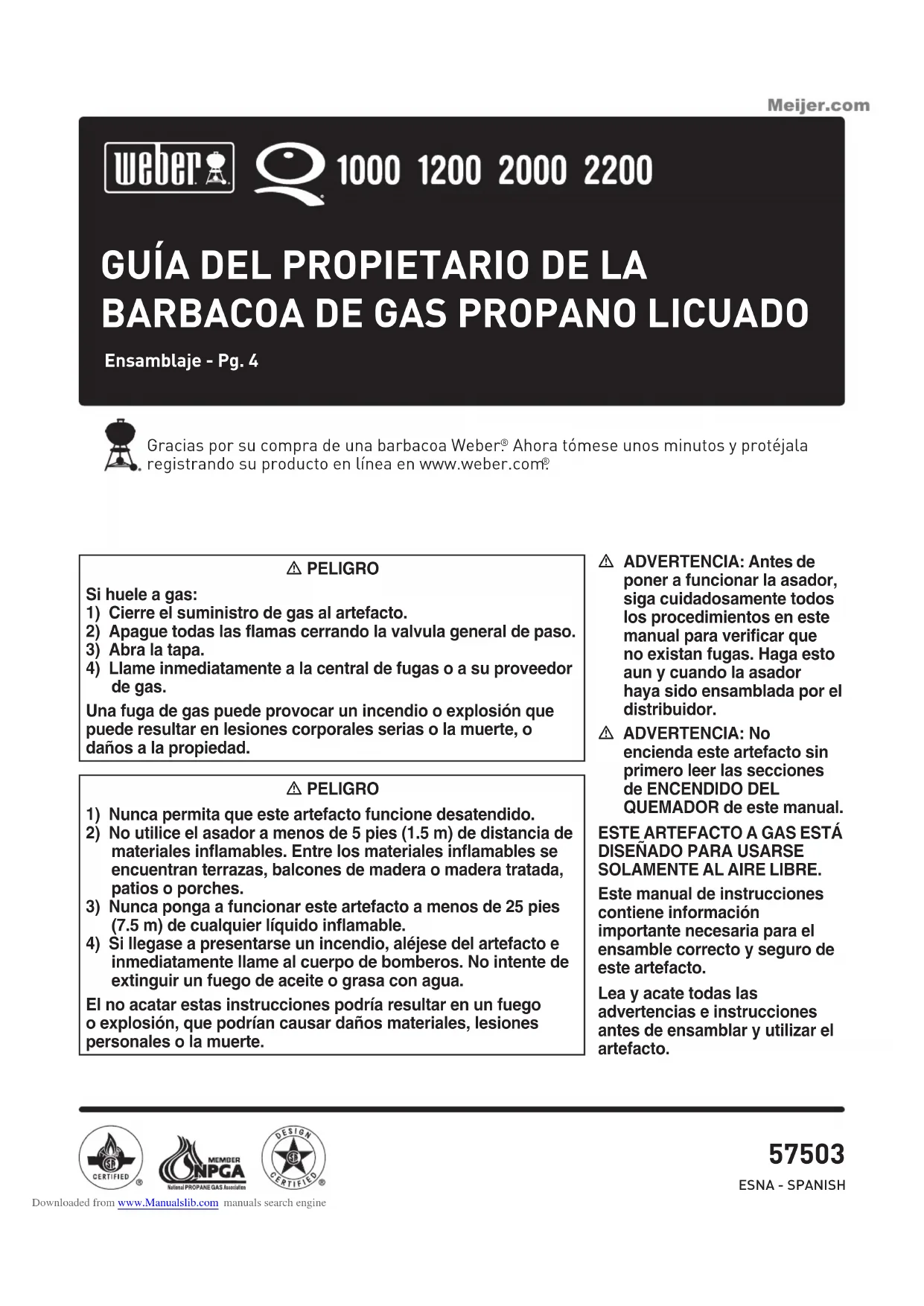 Encuentra gratis el manual del aparato Q1000 WEBER en formato PDF.
