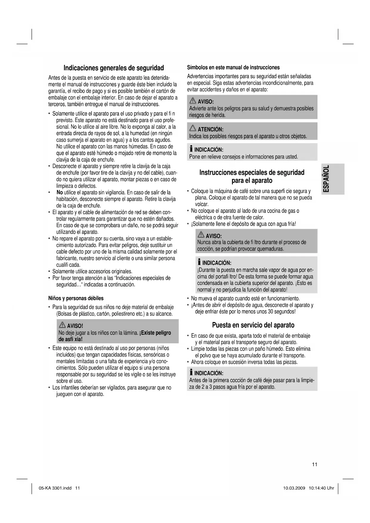 ESPAÑOL ESPAÑOL Indicaciones generales de seguridad