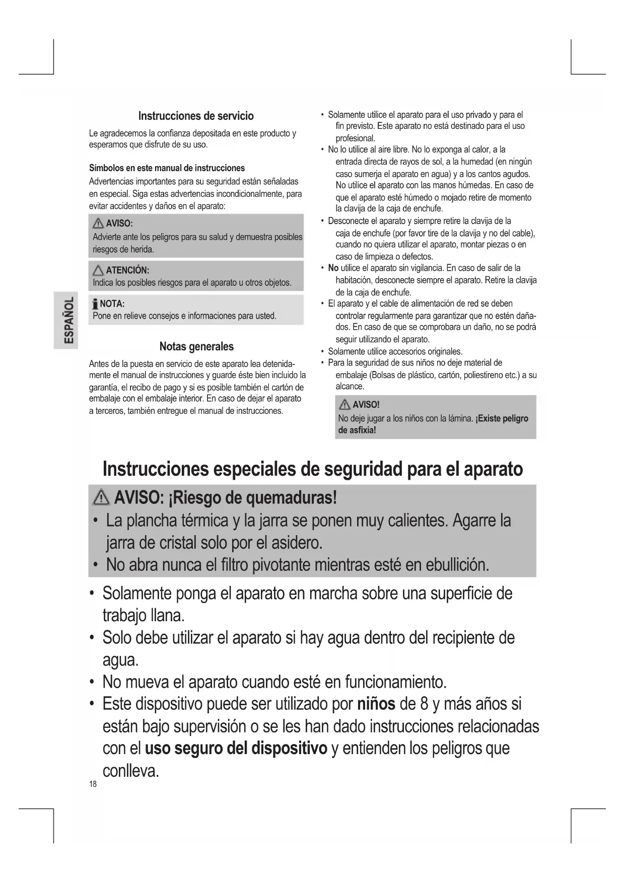 • La plancha térmica y la jarra se ponen muy calientes. Agarre la