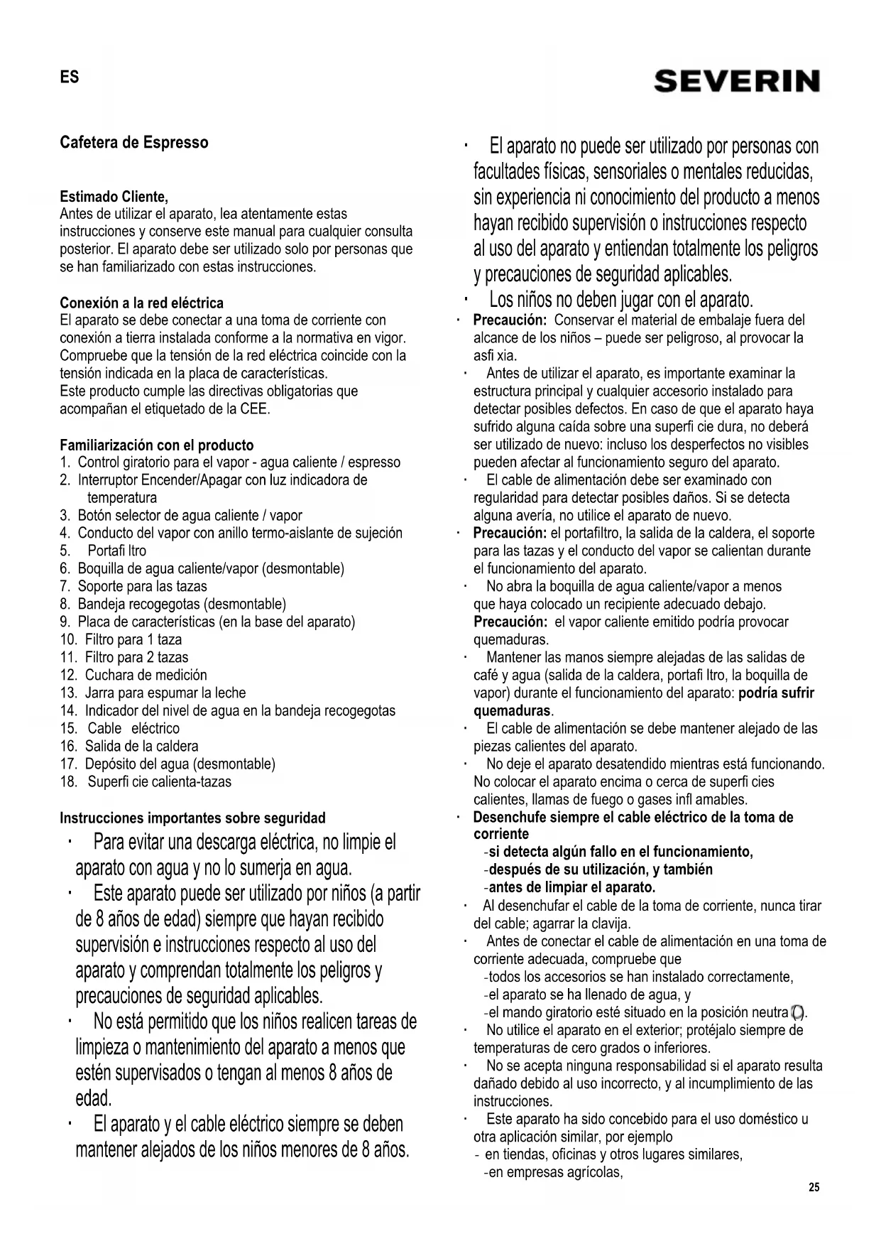 Descarga las instrucciones para tu Maquina de cafe en formato PDF gratis! Encuentra tus instrucciones KA 5990 - SEVERIN y toma tu dispositivo electrónico nuevamente en la mano. En esta página están publicados todos los documentos necesarios para el uso de su dispositivo. KA 5990 de la marca SEVERIN.