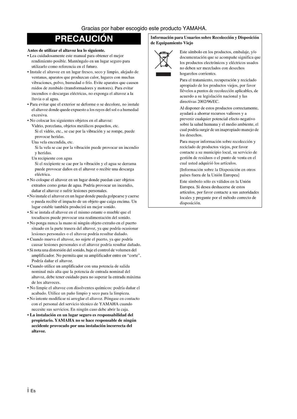 Gracias por haber escogido este producto YAMAHA.