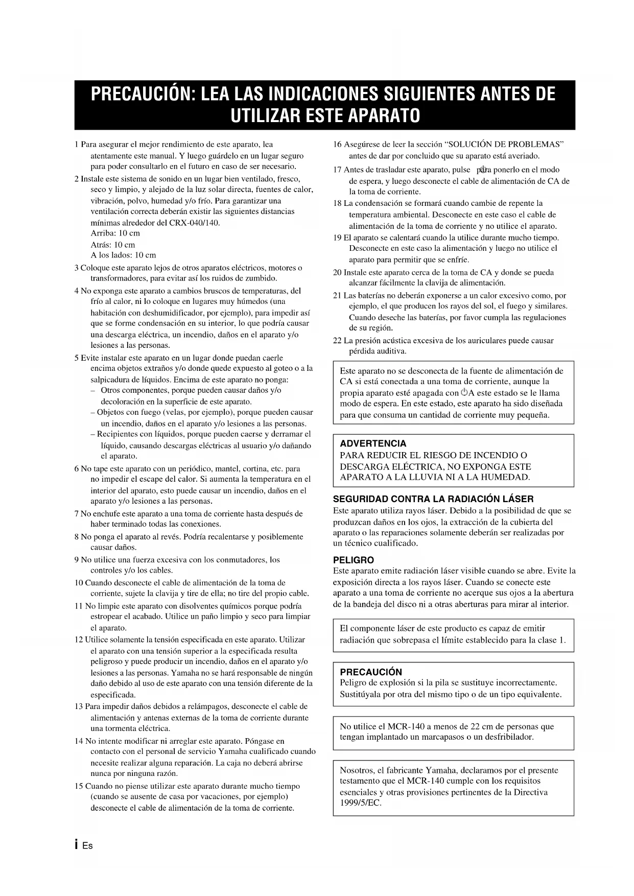 Encuentra gratis el manual del aparato MCR040 YAMAHA en formato PDF.