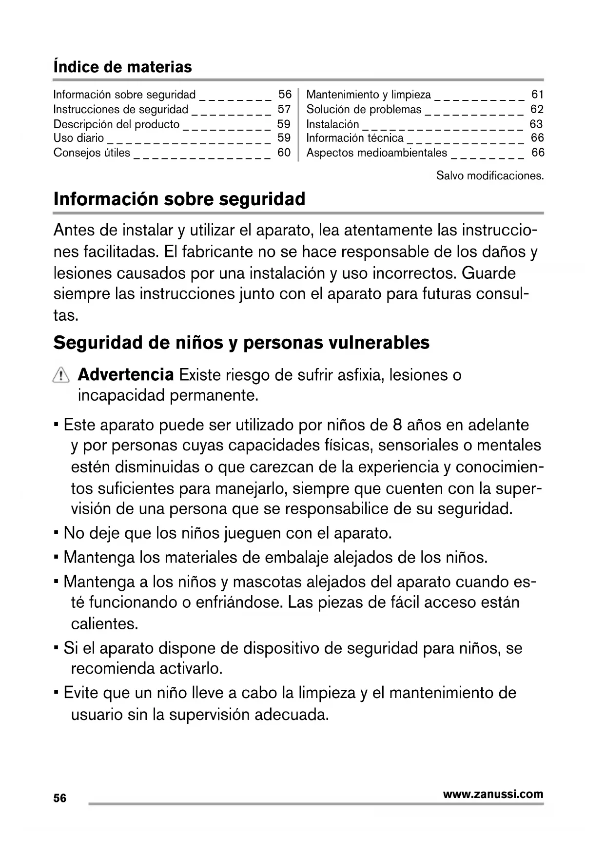 Información sobre seguridad _ _ _ _ _ _ _ _ 56