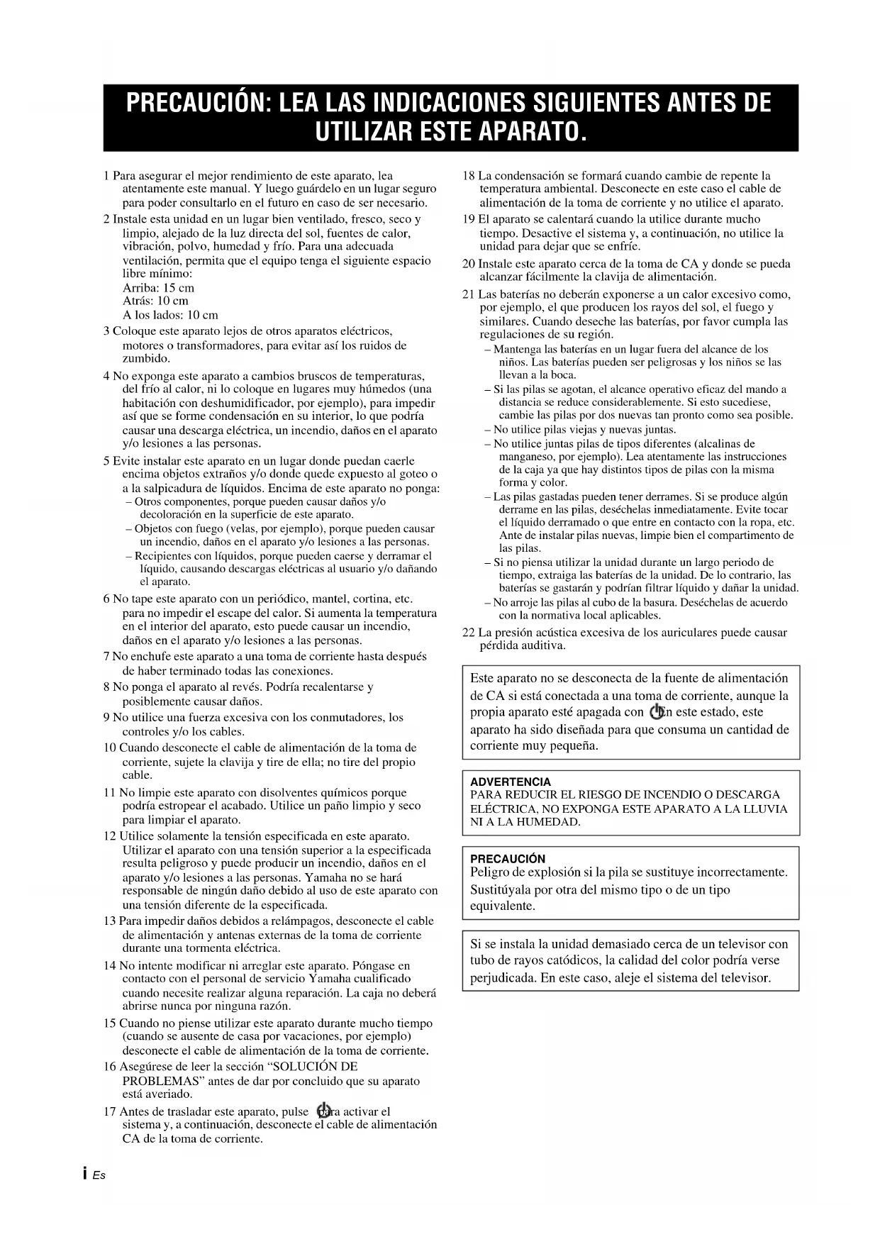 aparato y/o lesiones a las personas. Yamaha no se hará