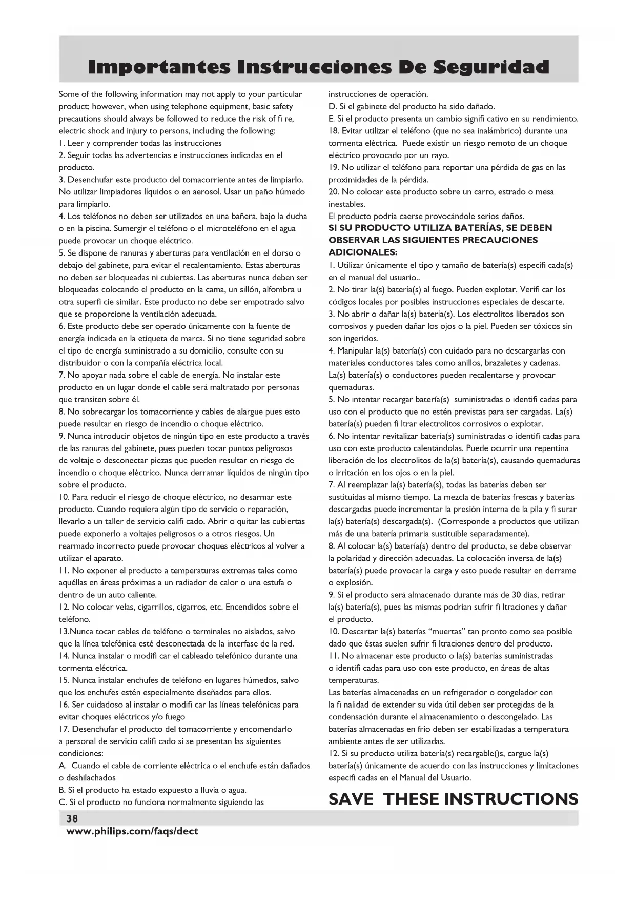4. Los Telefonos no deben ser realizados en una banera, bajo la ducha o en la piscina. Sumergir el Telefono o el microtelefon o en el agua pueda provocar unchoqueelectrico.