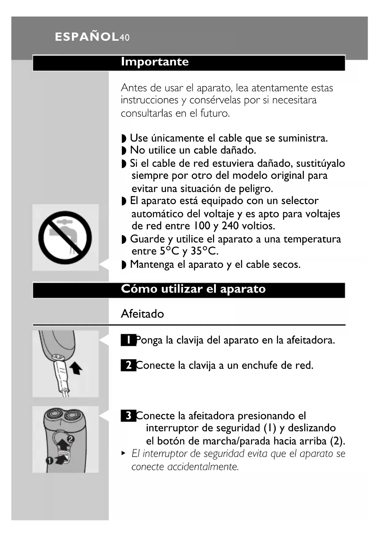 1 Apague la afeitadora, saque la clavija del