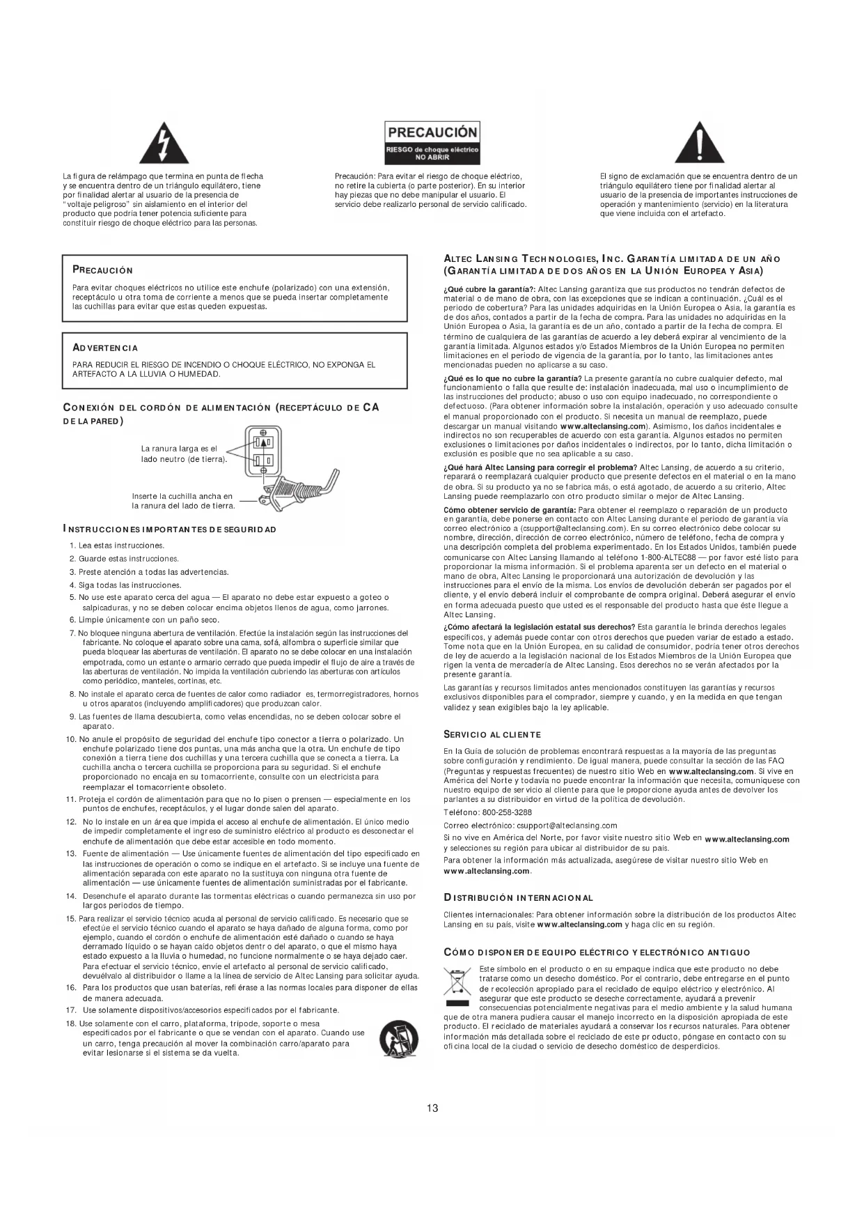 descargar un manual visitando www.alteclansing.com). Asimismo, los daños incidentales e