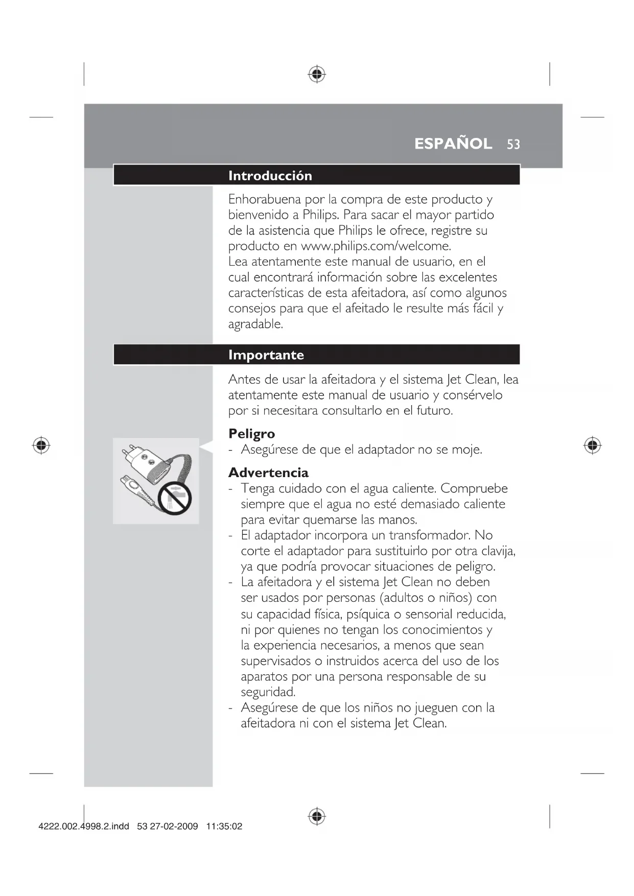 Antes de usar la afeitadora y el sistema Jet Clean, lea