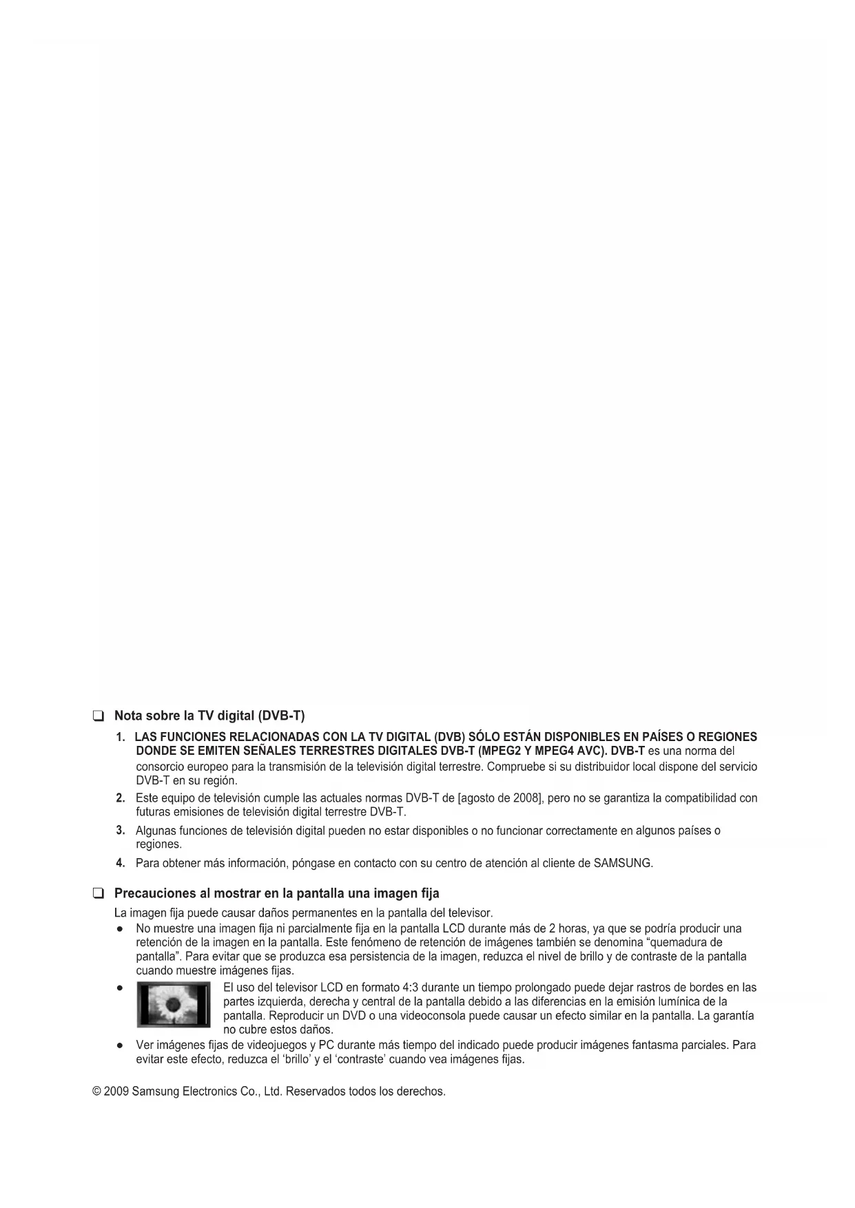 pantalla. Reproducir un DVD o una videoconsola puede causar un efecto similar en la pantalla. La garantía