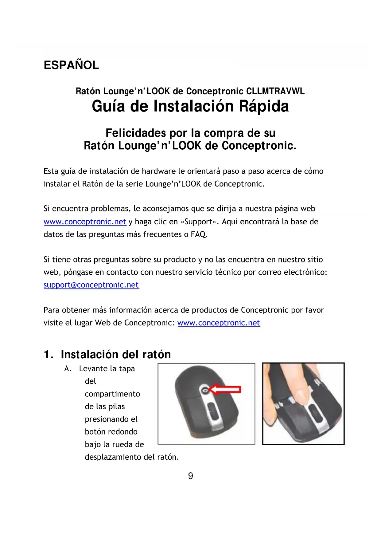 Felidades por la compra de su Ratón Lounge'n'LOOK de Conceptronic.