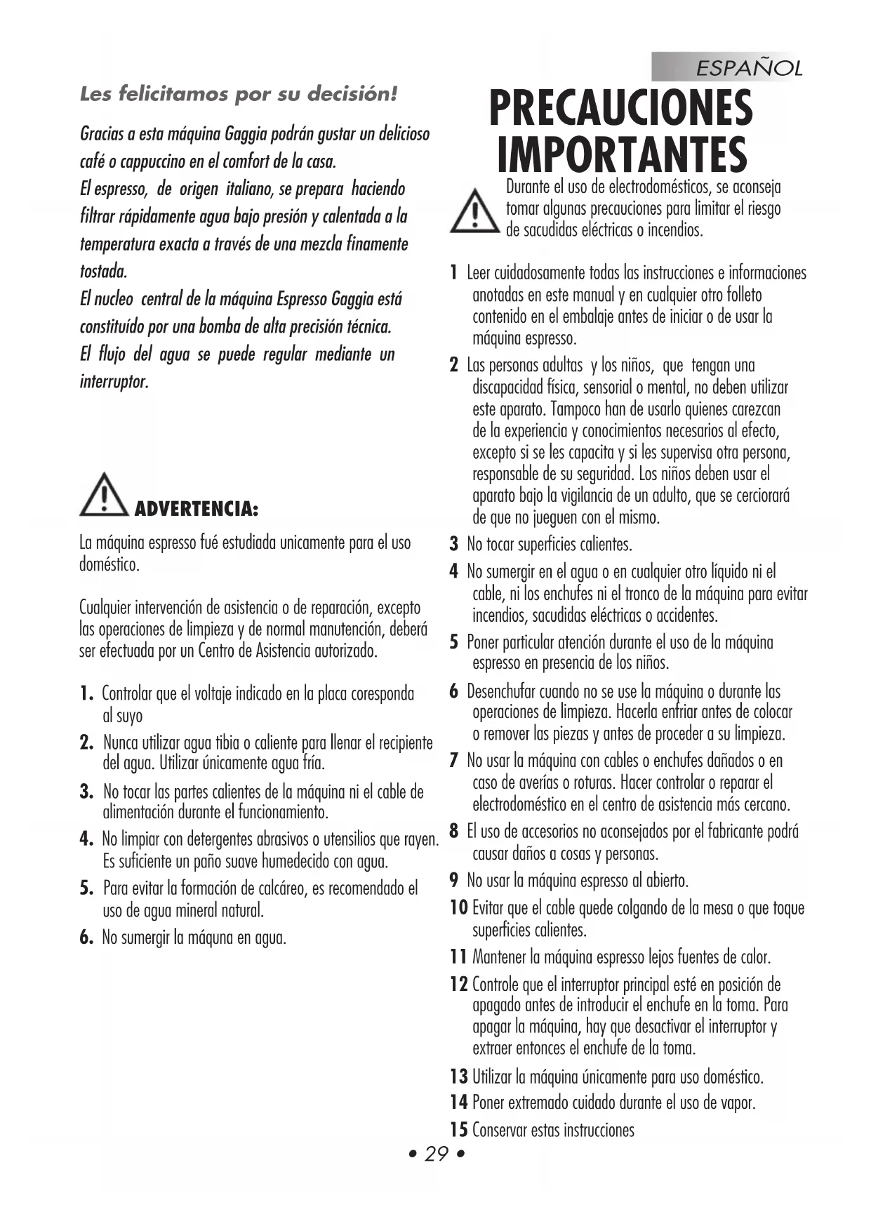 MANUAL DE USUARIO Espresso Color GAGGIA
