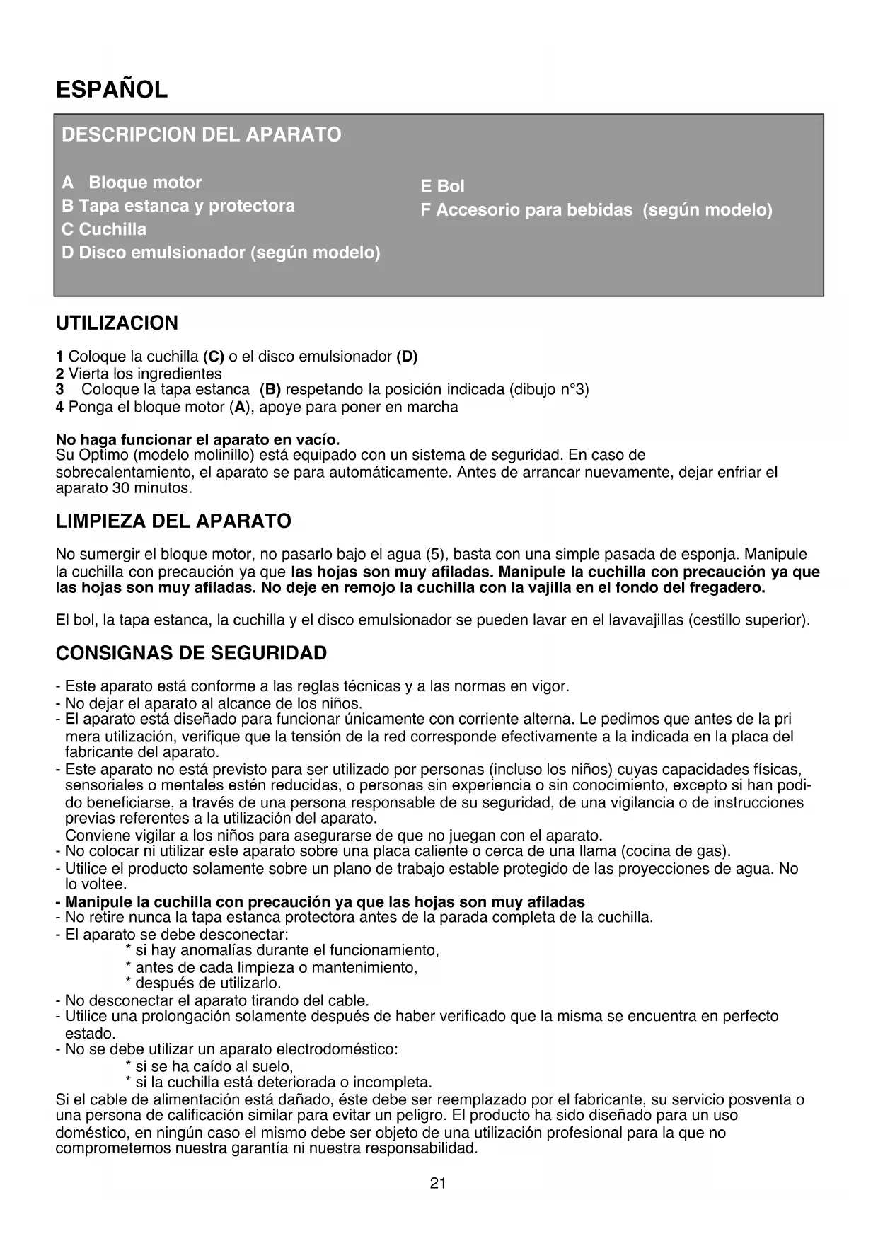 MANUAL DE USUARIO Optimo Compact MB4001 TEFAL