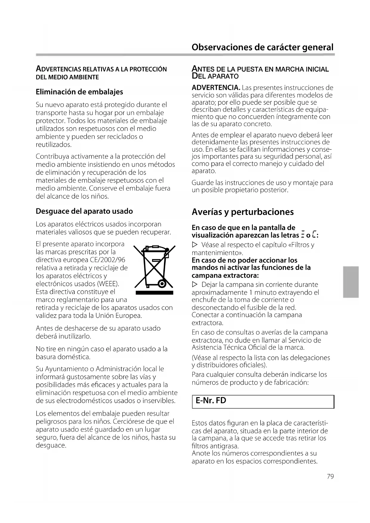 Antes de la puesta en marcha inicial del aparato 79