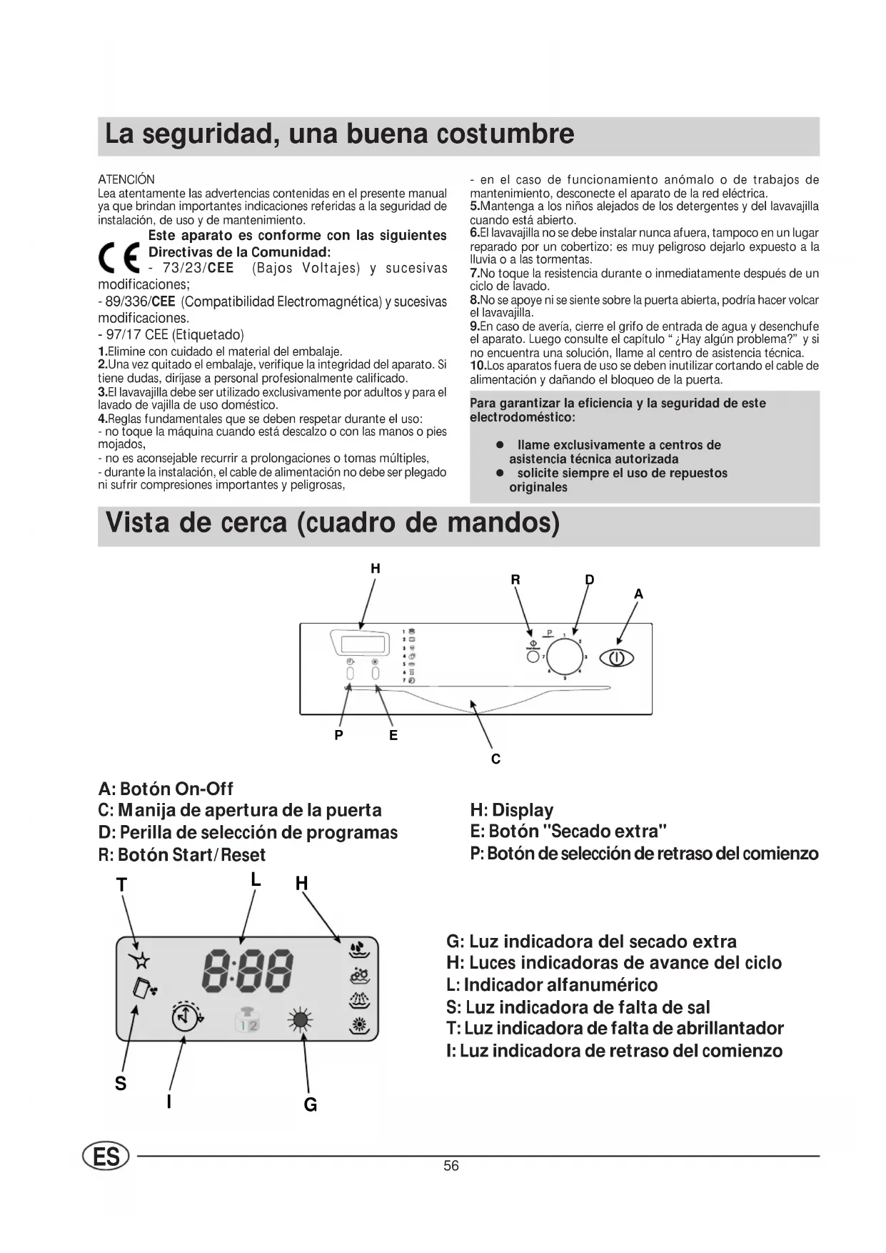 I S T L G H Para garantizar la eficiencia y la seguridad de esteelectrodoméstico:l llame exclusivamente a centros de asistencia técnica autorizadal solicite siempre el uso de repuestos originales A: Botón On-Off