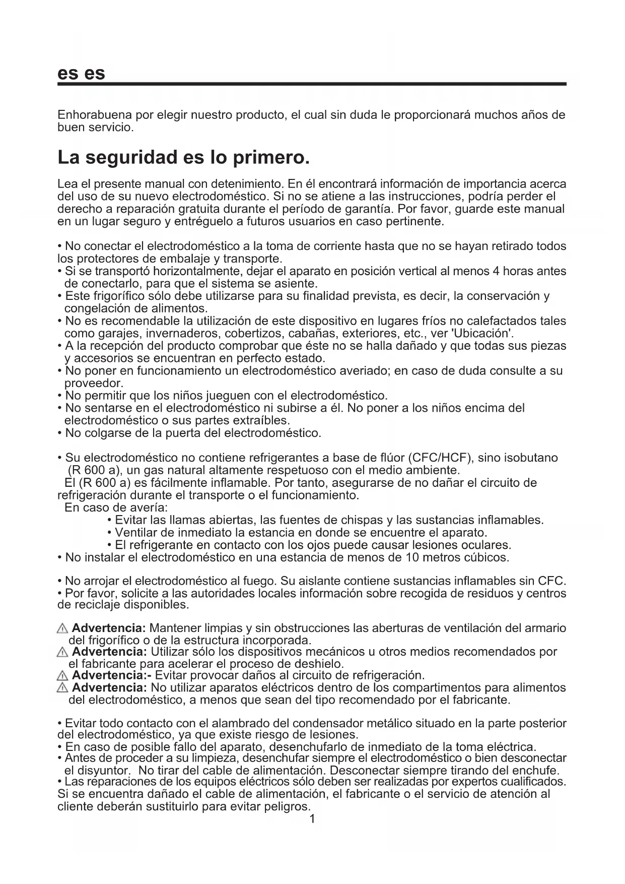 • No arrojar el electrodoméstico al fuego. Su aislante contiene sustancias inflamables sin CFC.