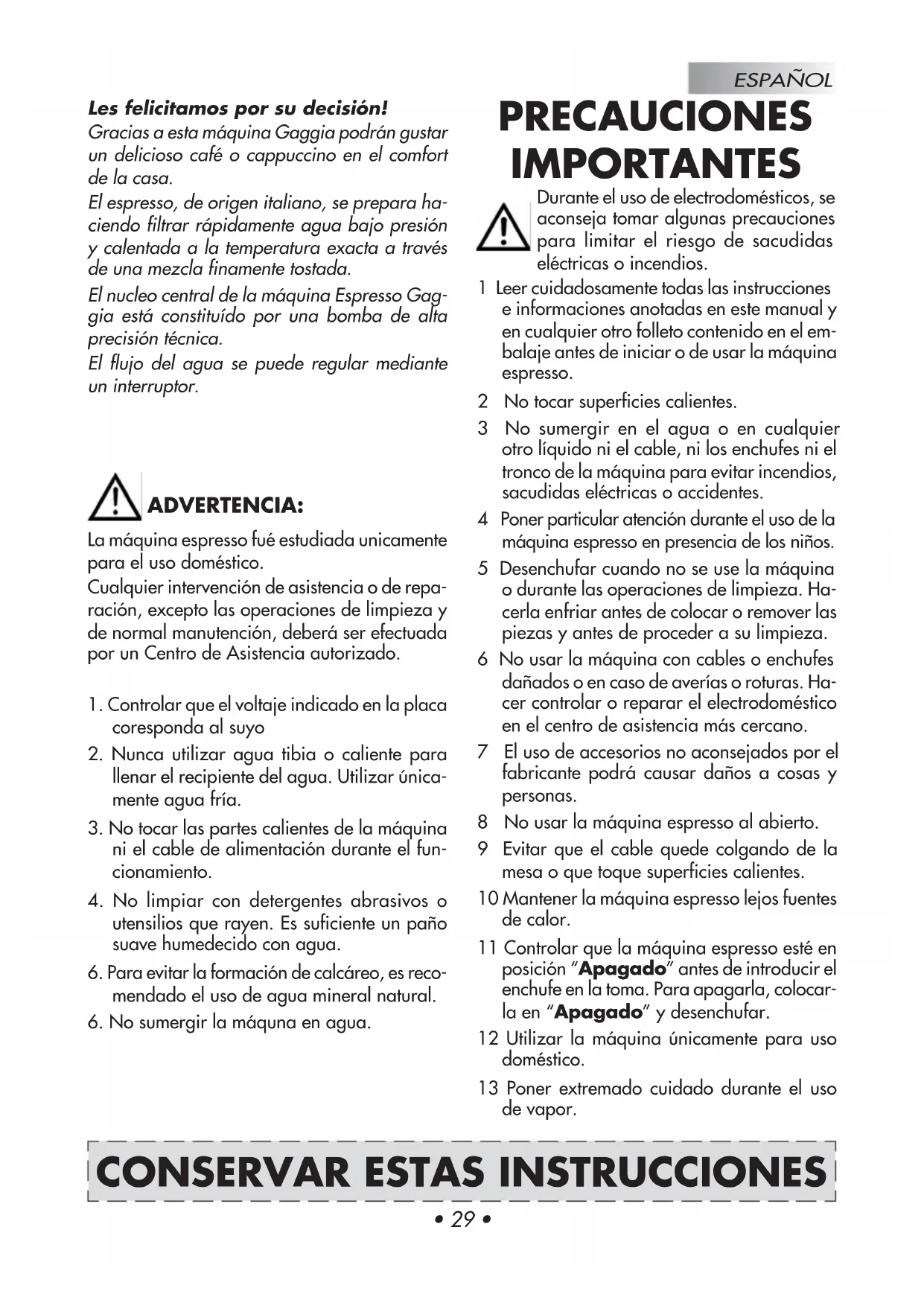 Baby Nero - Maquina de cafe GAGGIA - Manual de uso y guía de instrucciones gratis