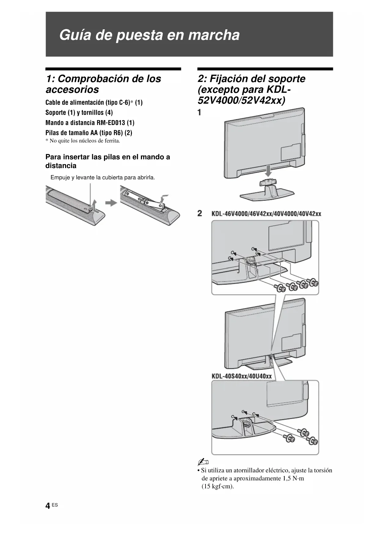 KDL52V4000K - TELEVISOR SONY - Manual de uso y guía de instrucciones gratis