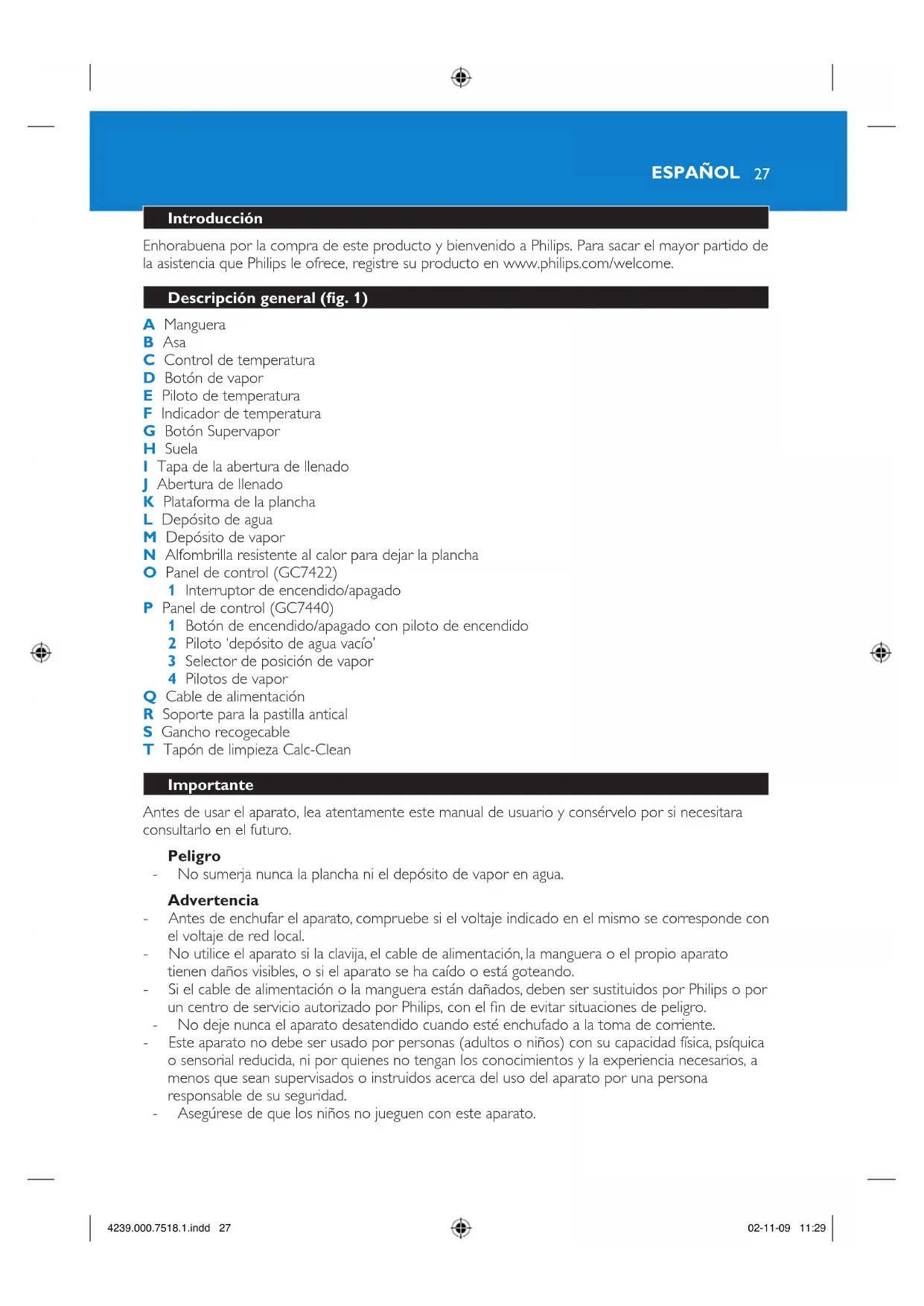 MANUAL DE USUARIO GC7440 PHILIPS