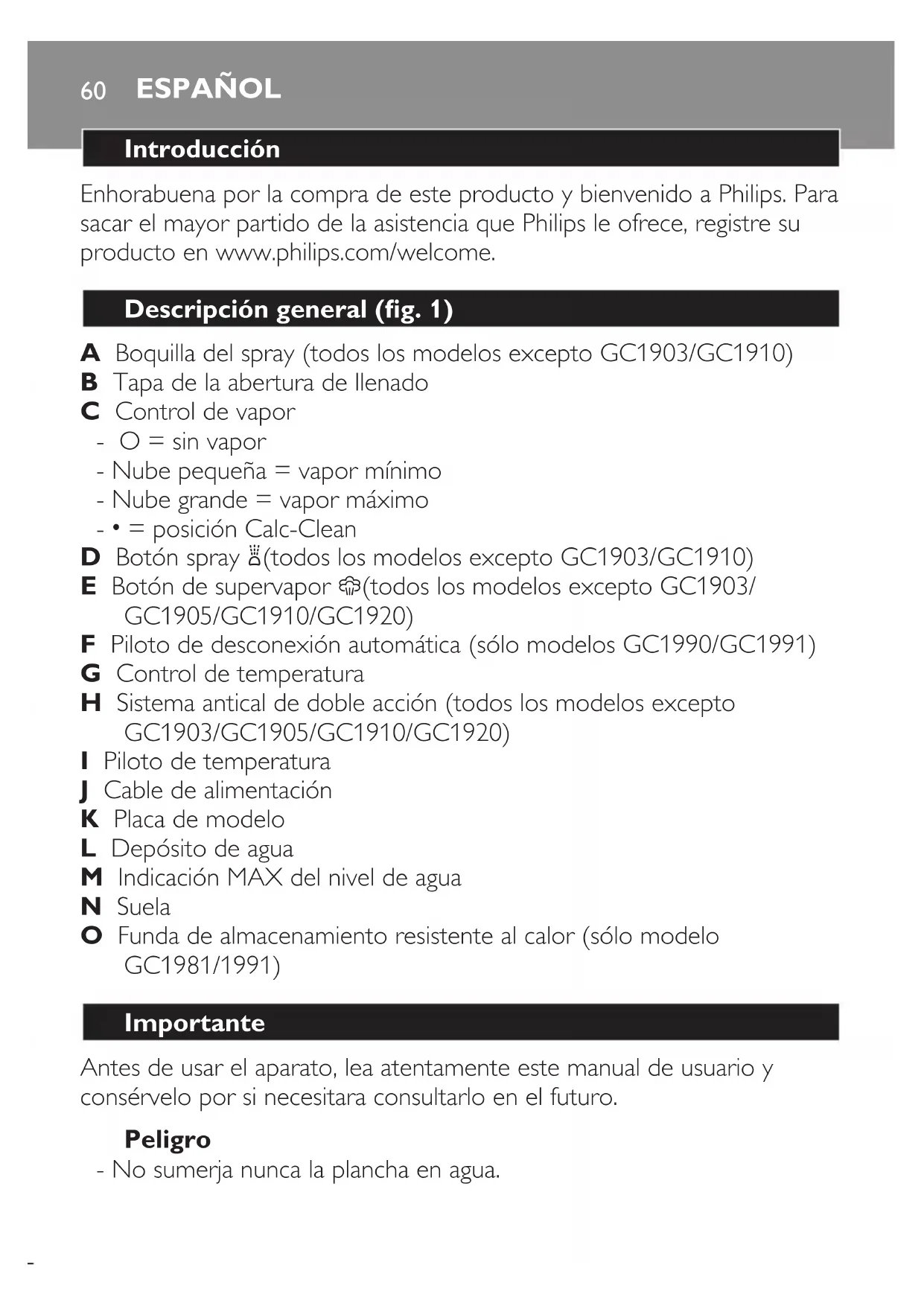 MANUAL DE USUARIO 1900 series GC1930 PHILIPS