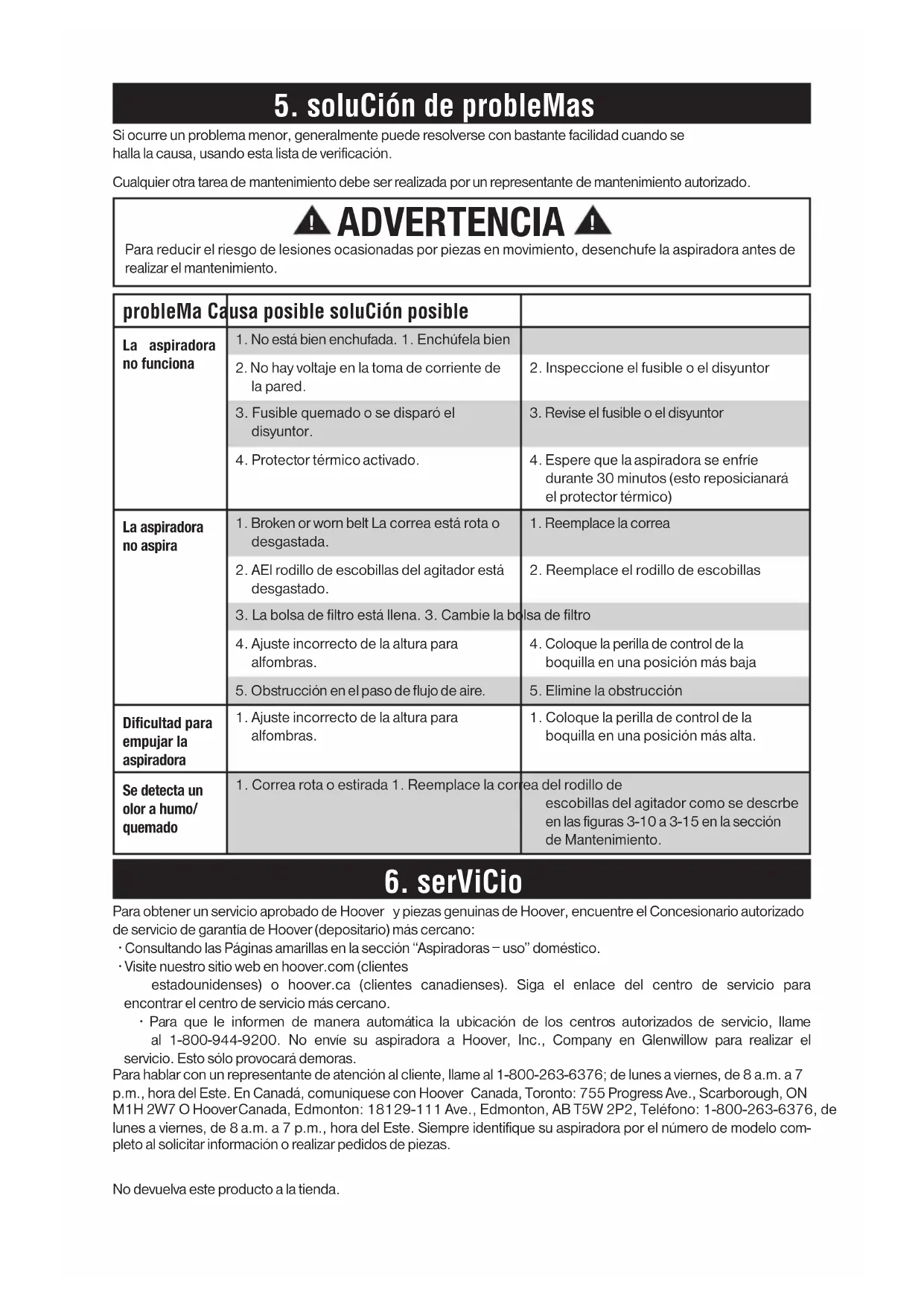 hoover.ca (clientes canadienses). Si necesita asistencia