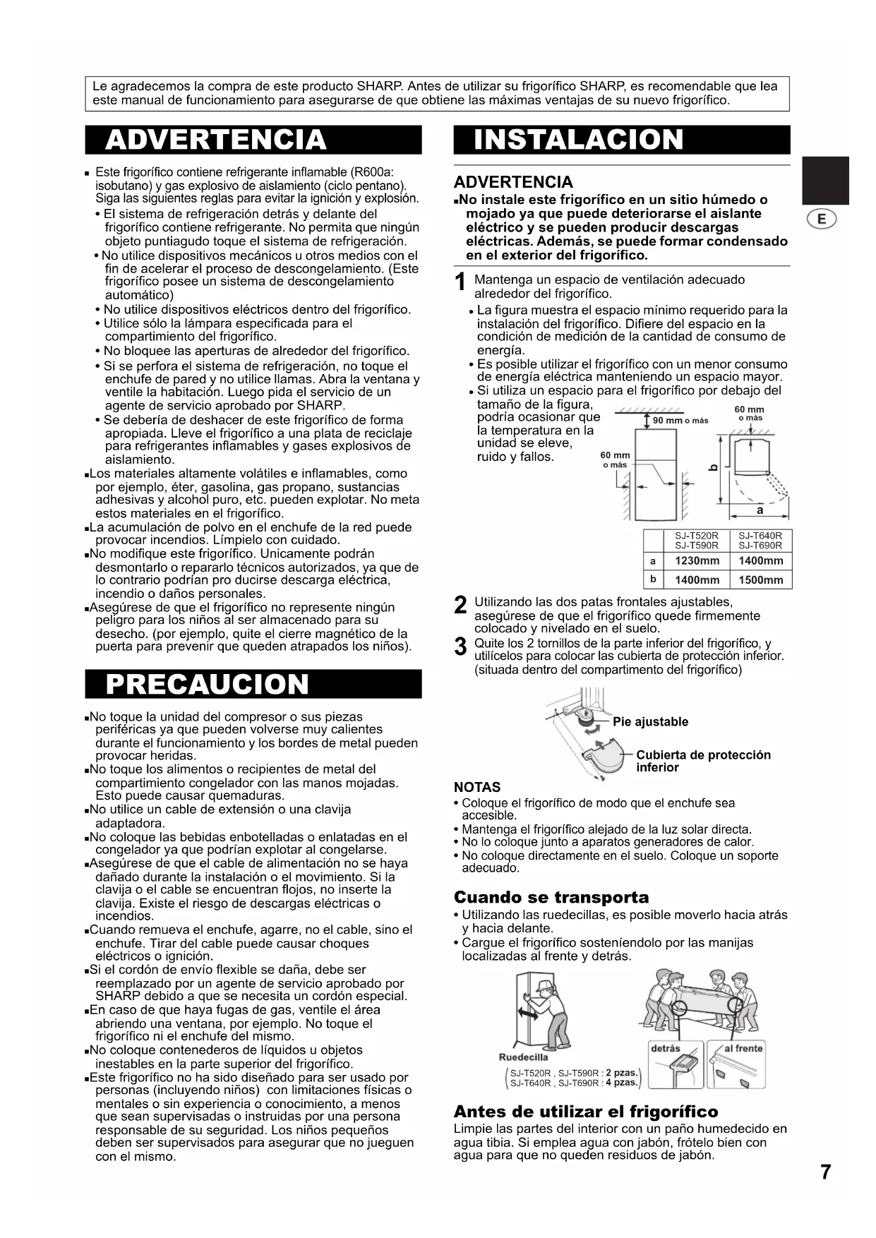 Le agradecemos la compra de este producto SHARP. Antes de utilizar su frigorífico SHARP, es recomendable que lea