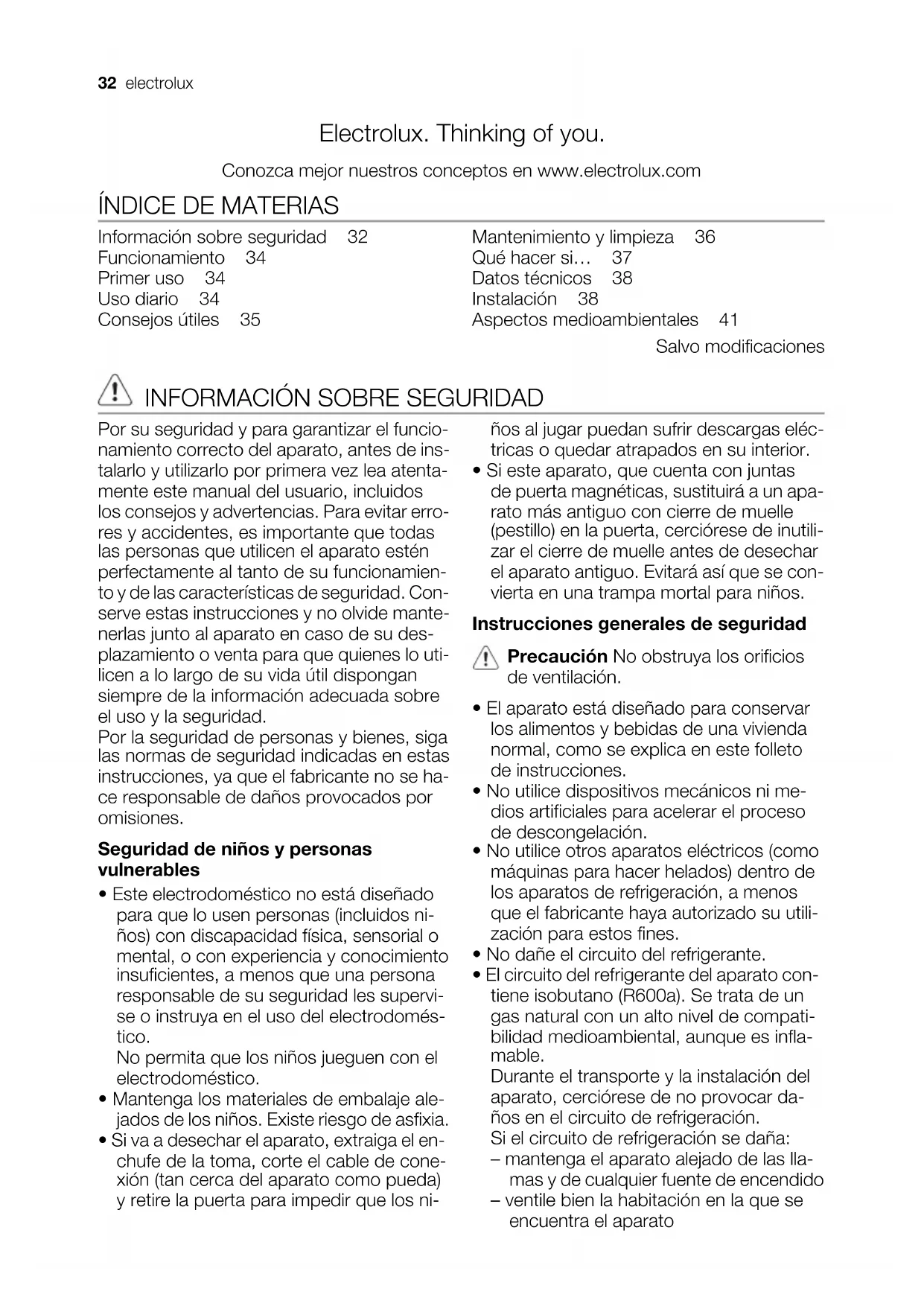 ÍNDICE DE MATERIAS Información sobre seguridad 32