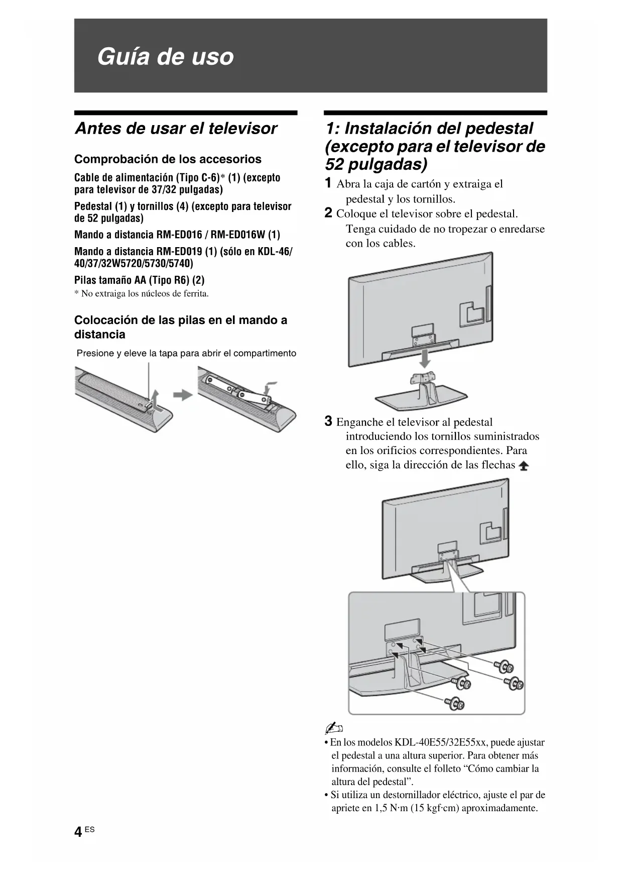 Descarga las instrucciones para tu TELEVISOR en formato PDF gratis! Encuentra tus instrucciones Bravia KDL52W5500AEP - SONY y toma tu dispositivo electrónico nuevamente en la mano. En esta página están publicados todos los documentos necesarios para el uso de su dispositivo. Bravia KDL52W5500AEP de la marca SONY.