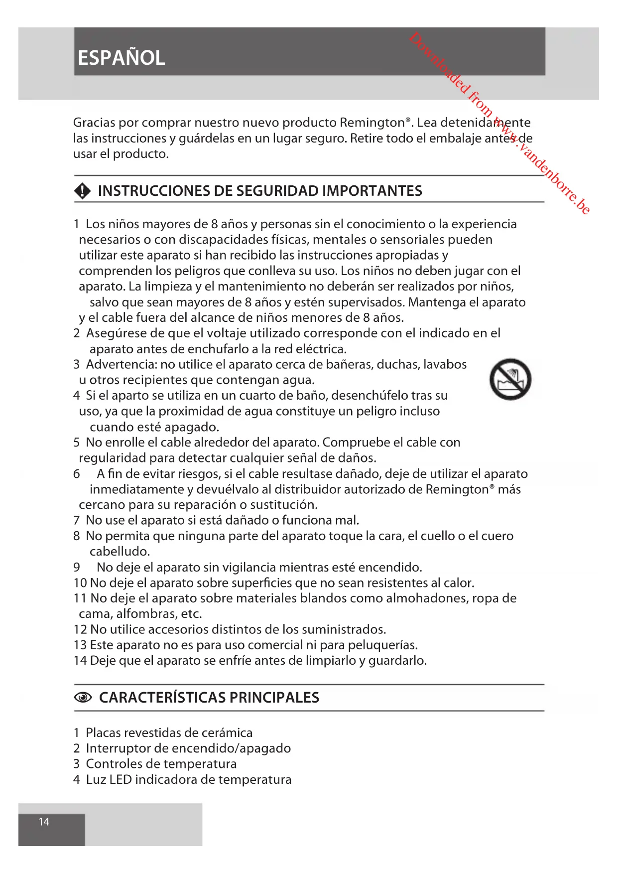 S1005 - Plancha REMINGTON - Manual de uso y guía de instrucciones gratis