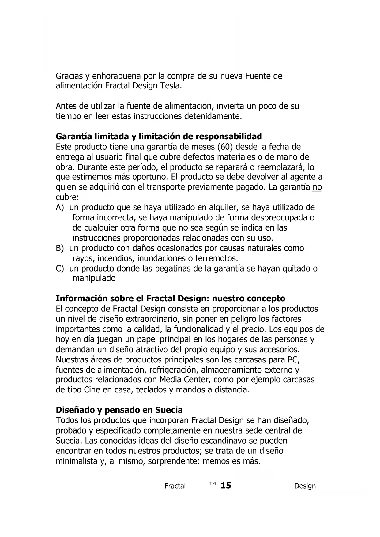 Gracias y enhorabuena por la compra de su nueva Fuente de alimentación Fractal Design Tesla.