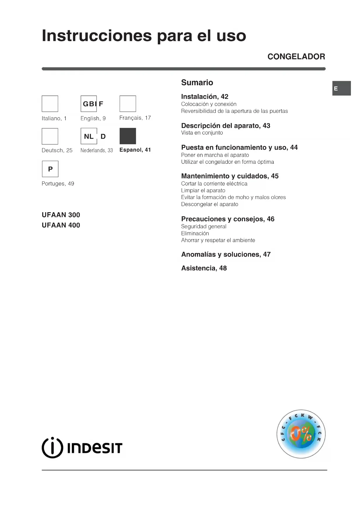 UFAAN 400 - Congelador INDESIT - Manual de uso y guía de instrucciones gratis