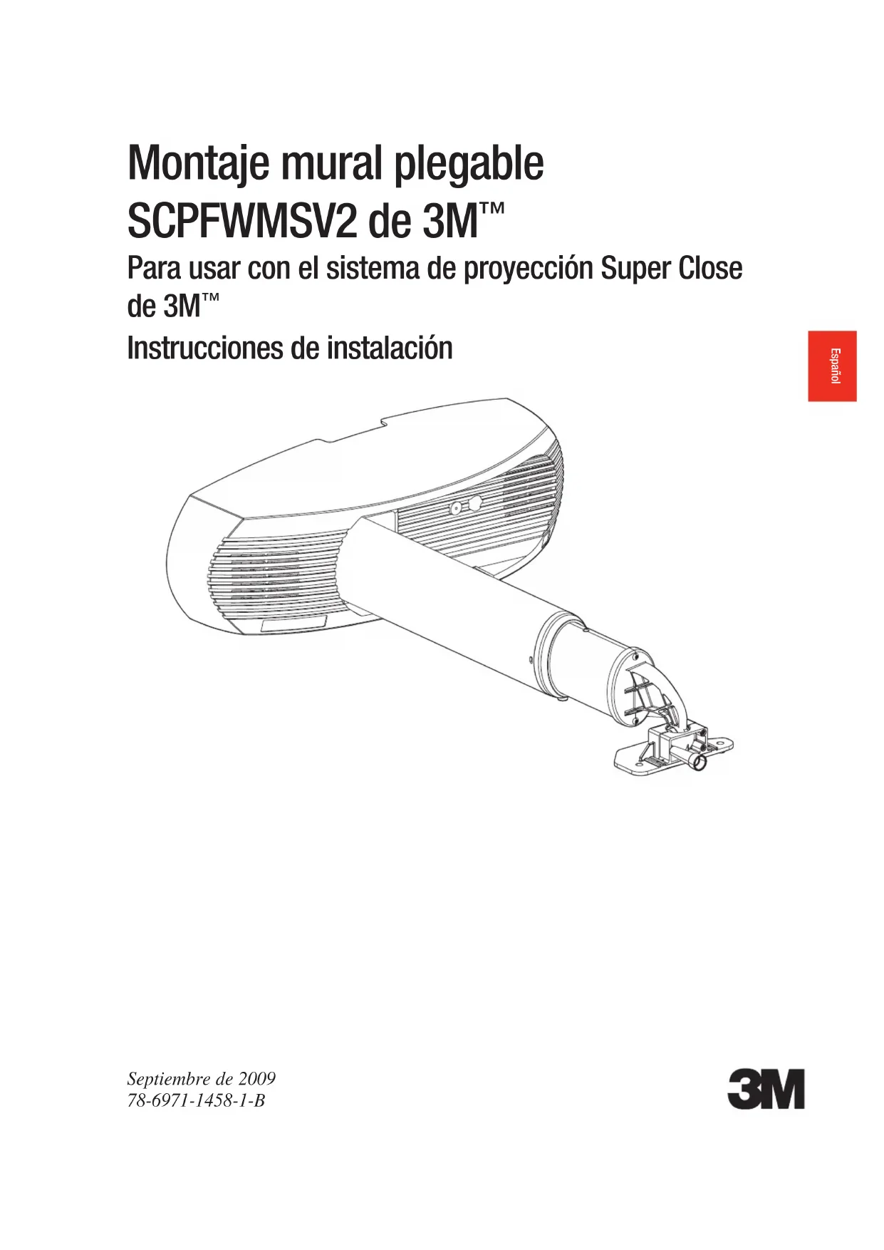 4X 1/2–5/8"(13–16 mm)44 © 2009 3M. Reservados todos los derechos.Montaje mural plegable SCPFWMV2 y SCPFWMSV2 de 3M ™ Español 7.5 Utilice una broca de 3/8”, coloque el soporte en la pared