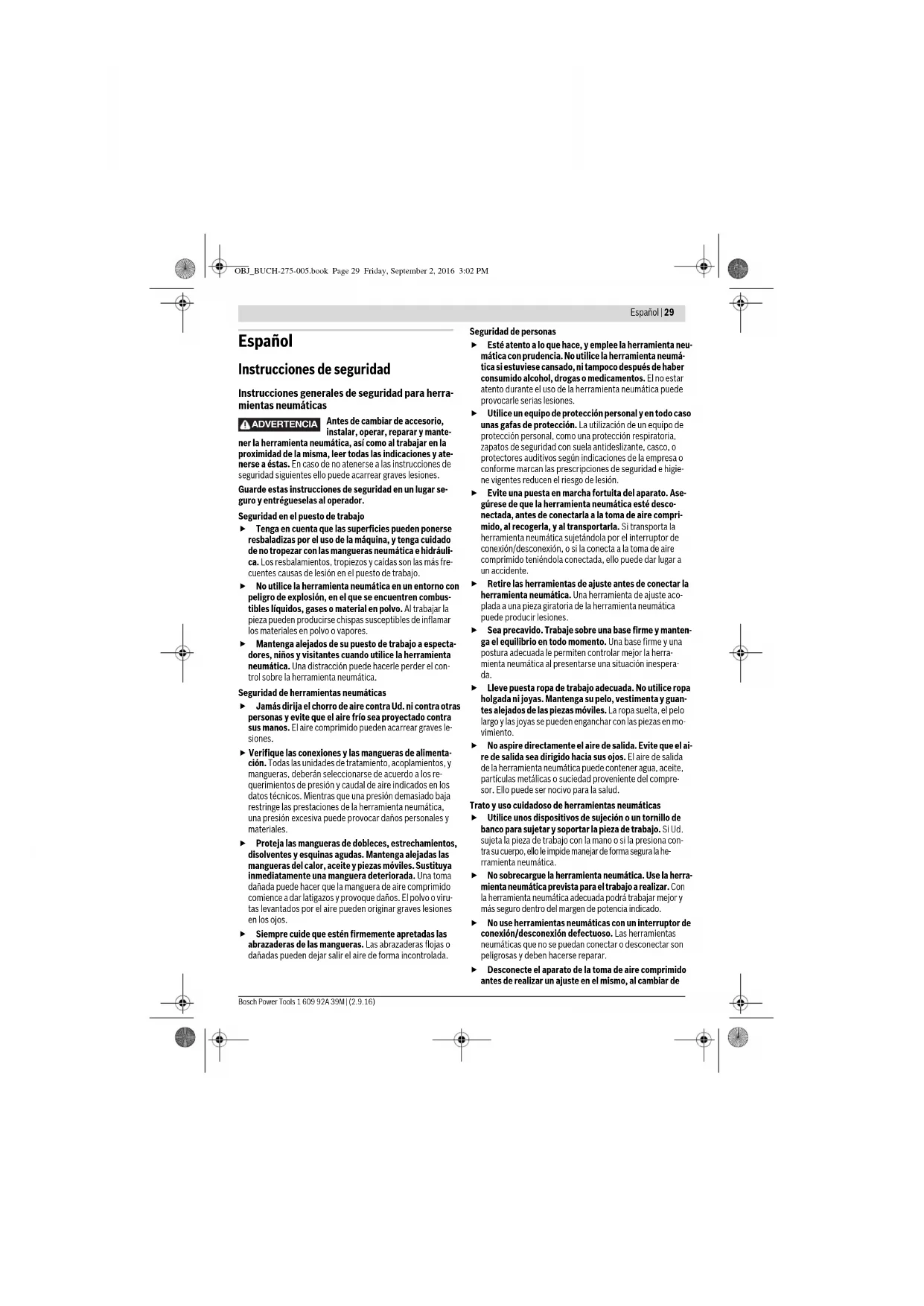 OBJ_BUCH-275-005.book Page 28 Friday, September 2, 2016 3:02 PMEspañol | 29 Bosch Power Tools 1 609 92A 39M | (2.9.16) Español