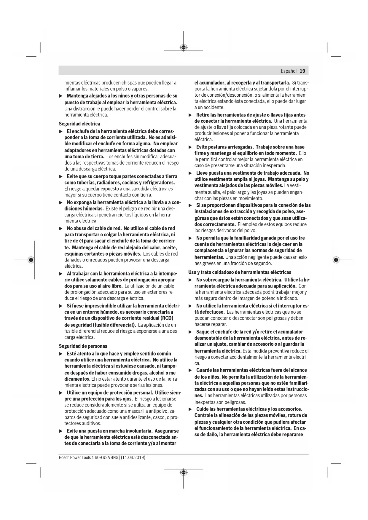 tibles líquidos, gases o material en polvo. Las herra- 1 609 92A 4NG | (11.04.2019) Bosch Power ToolsEspañol | 19