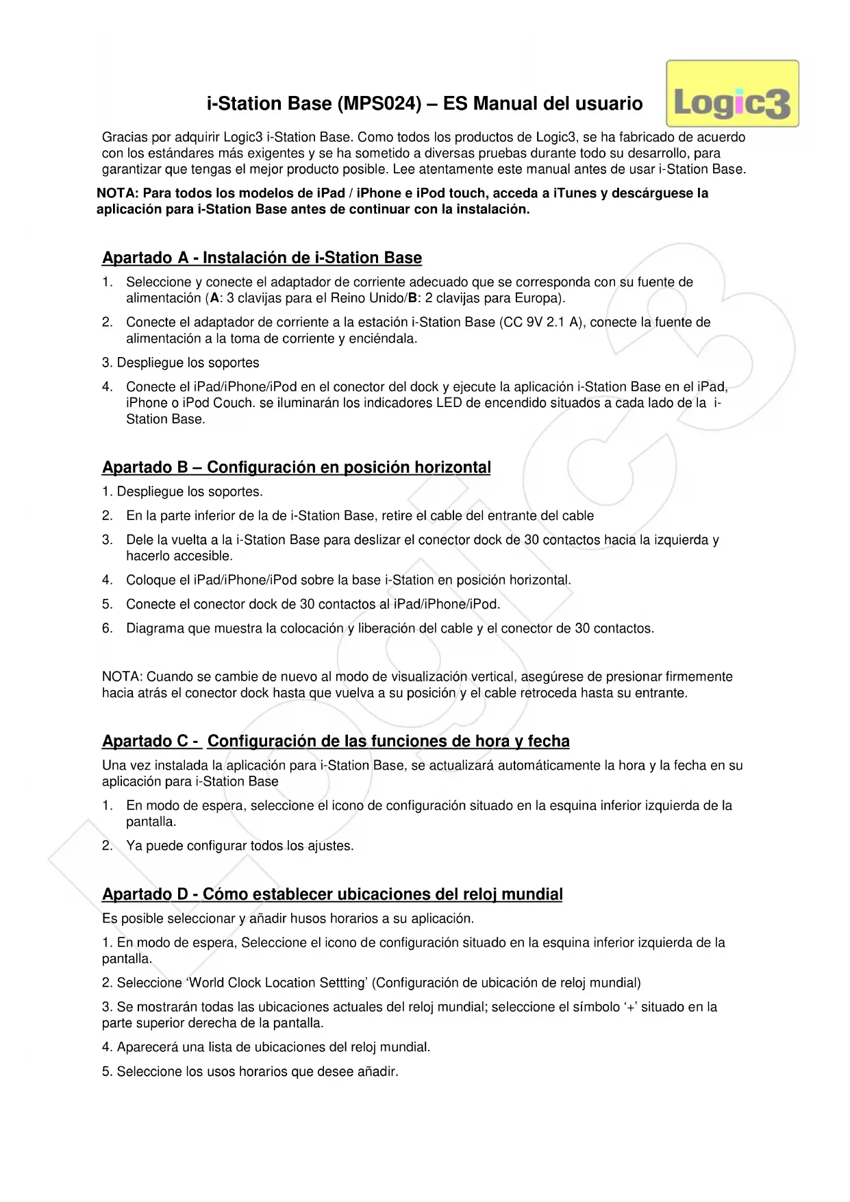 MANUAL DE USUARIO iStation Base Logic3
