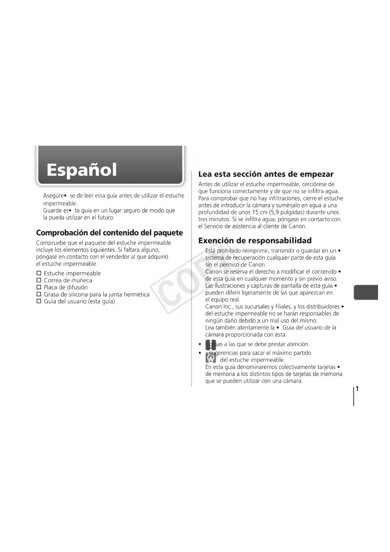 ESTUCHE IMPERMEABLE PARA CÁMARA DIGITAL CANON Guía del usuario