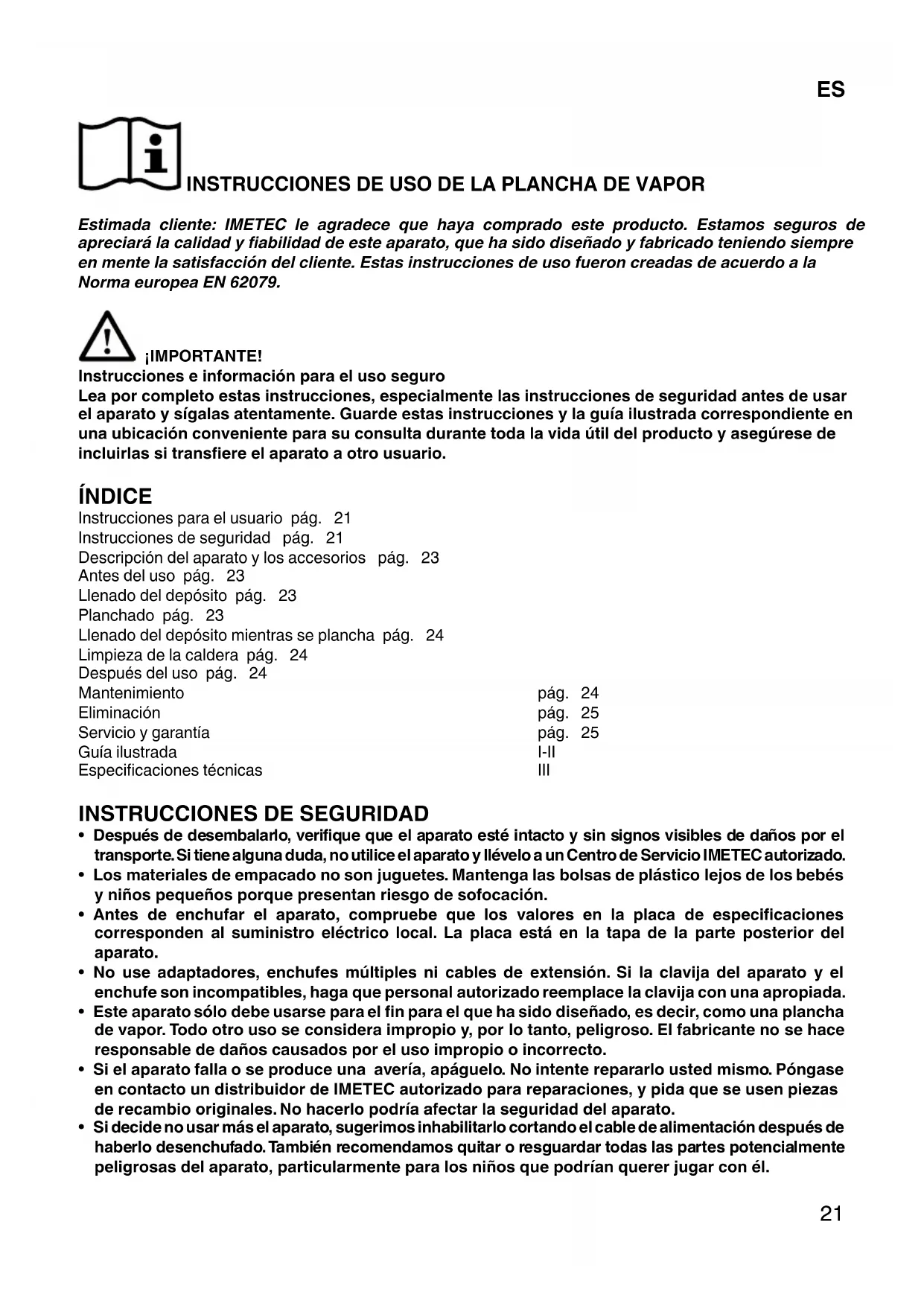 Instrucciones de seguridad pág. 21